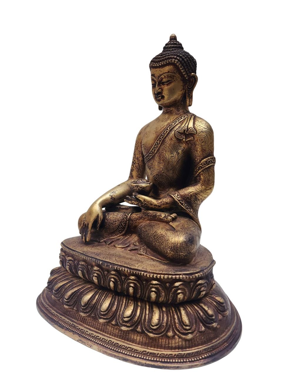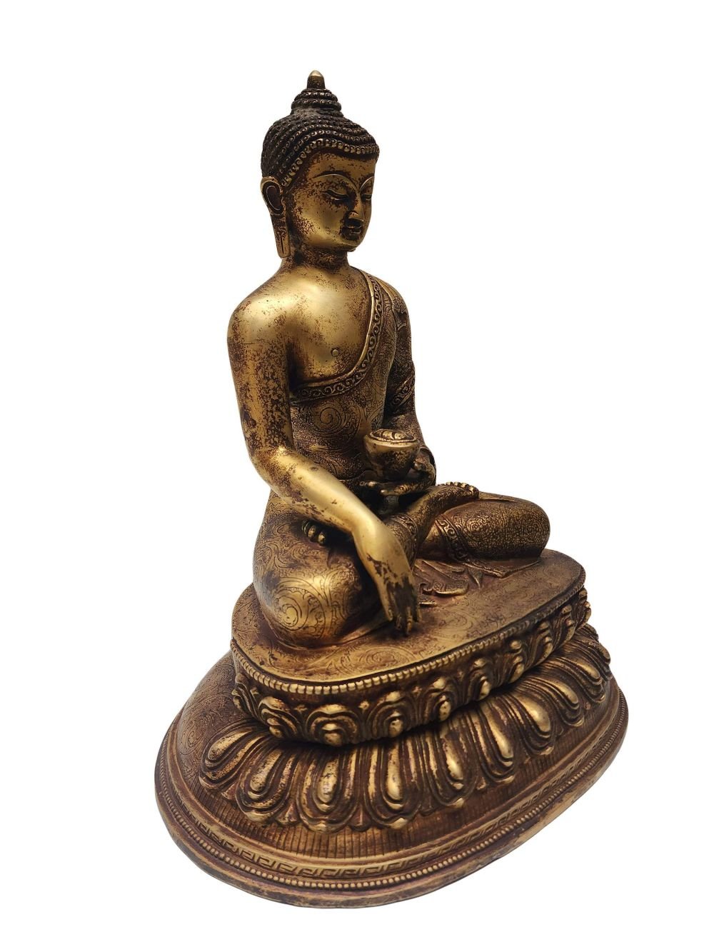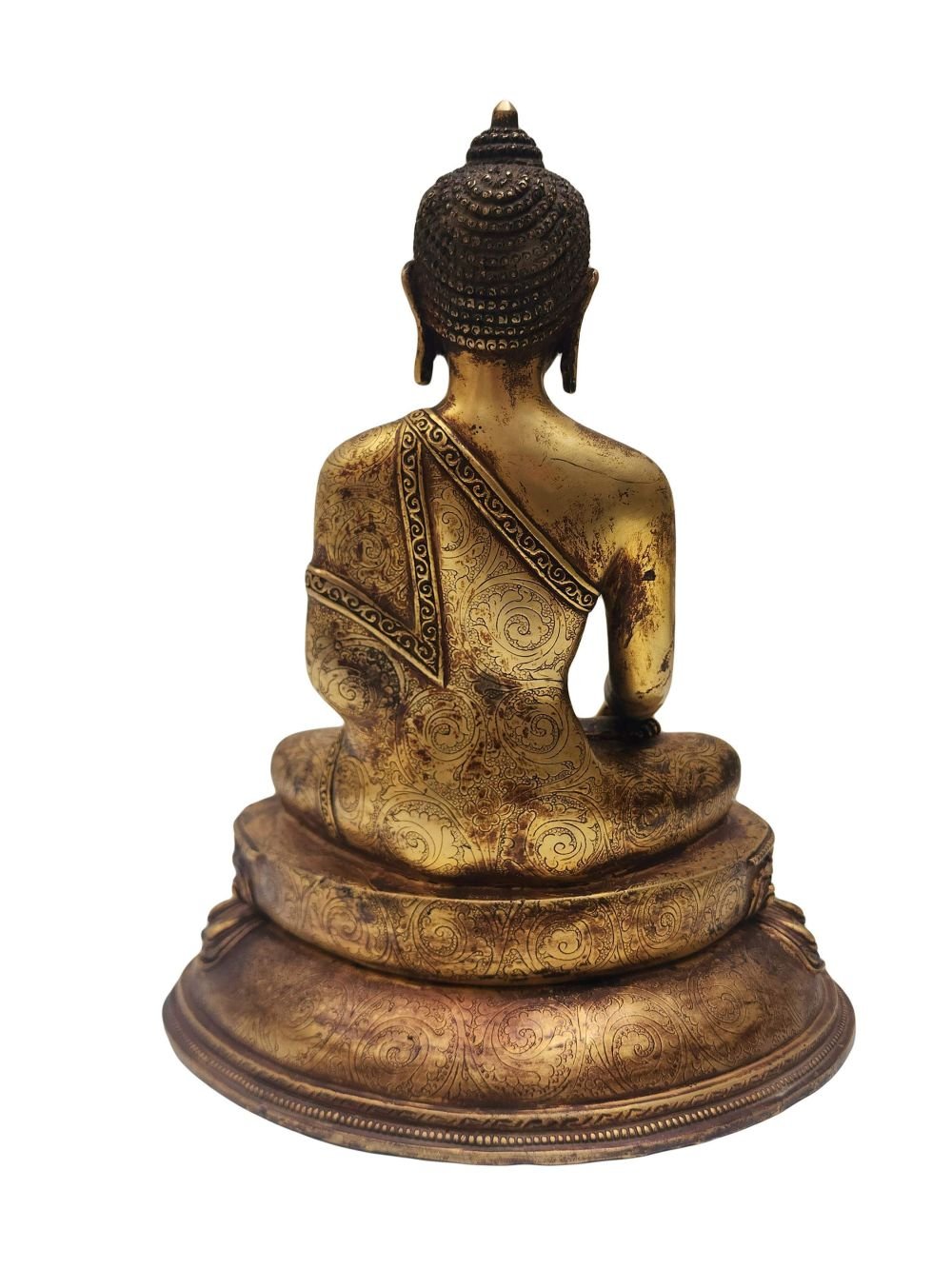 Buddhist Statue of Shakyamuni Buddha, Full Fire Gold Plated, Antique Finishing , The Enlightened One and Teacher of Humanity