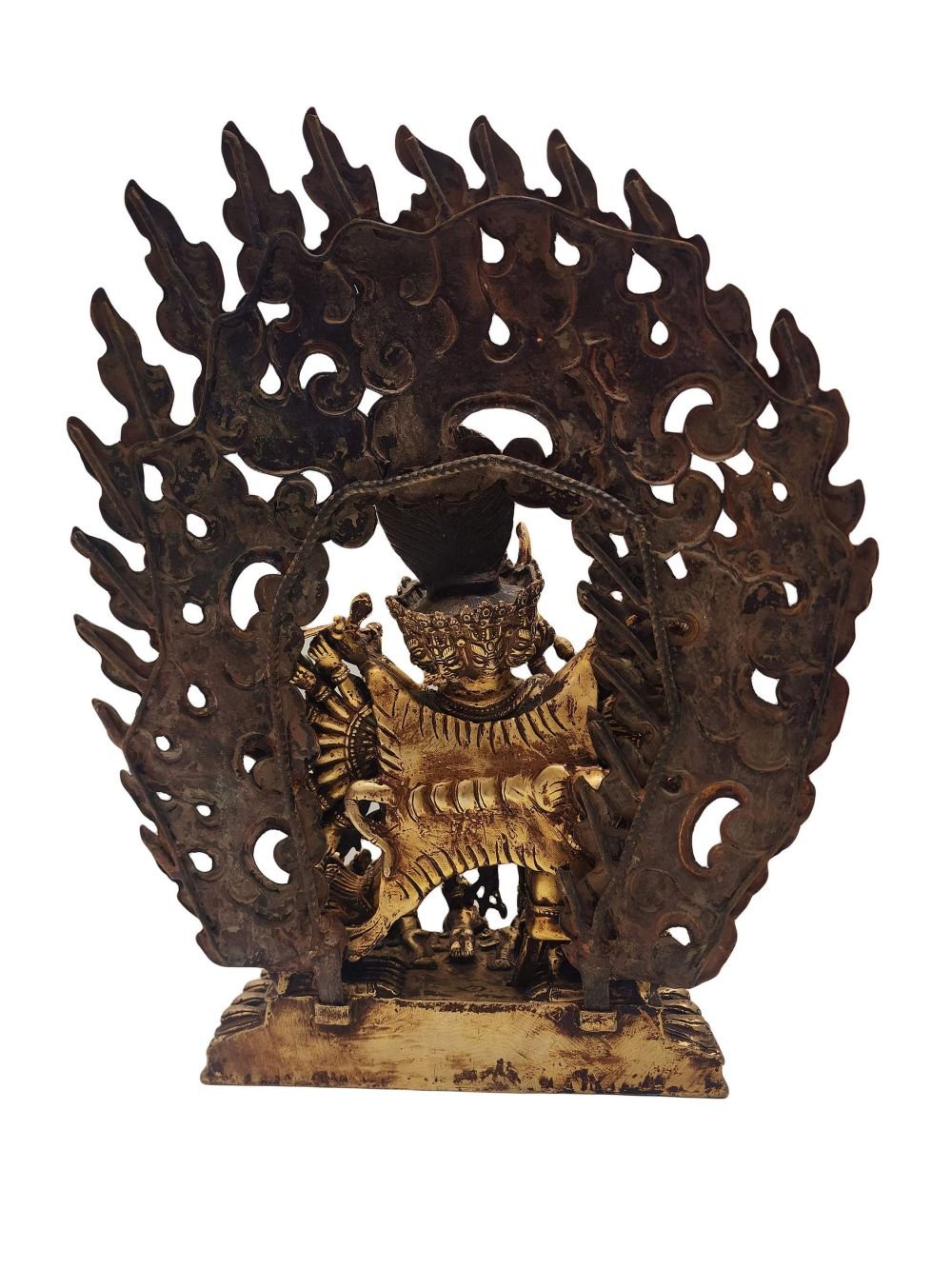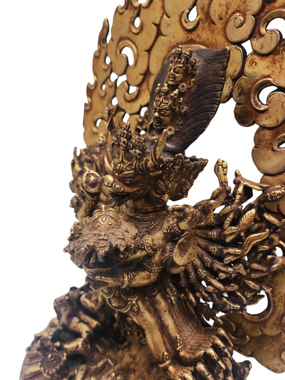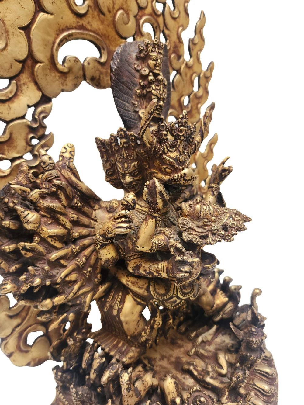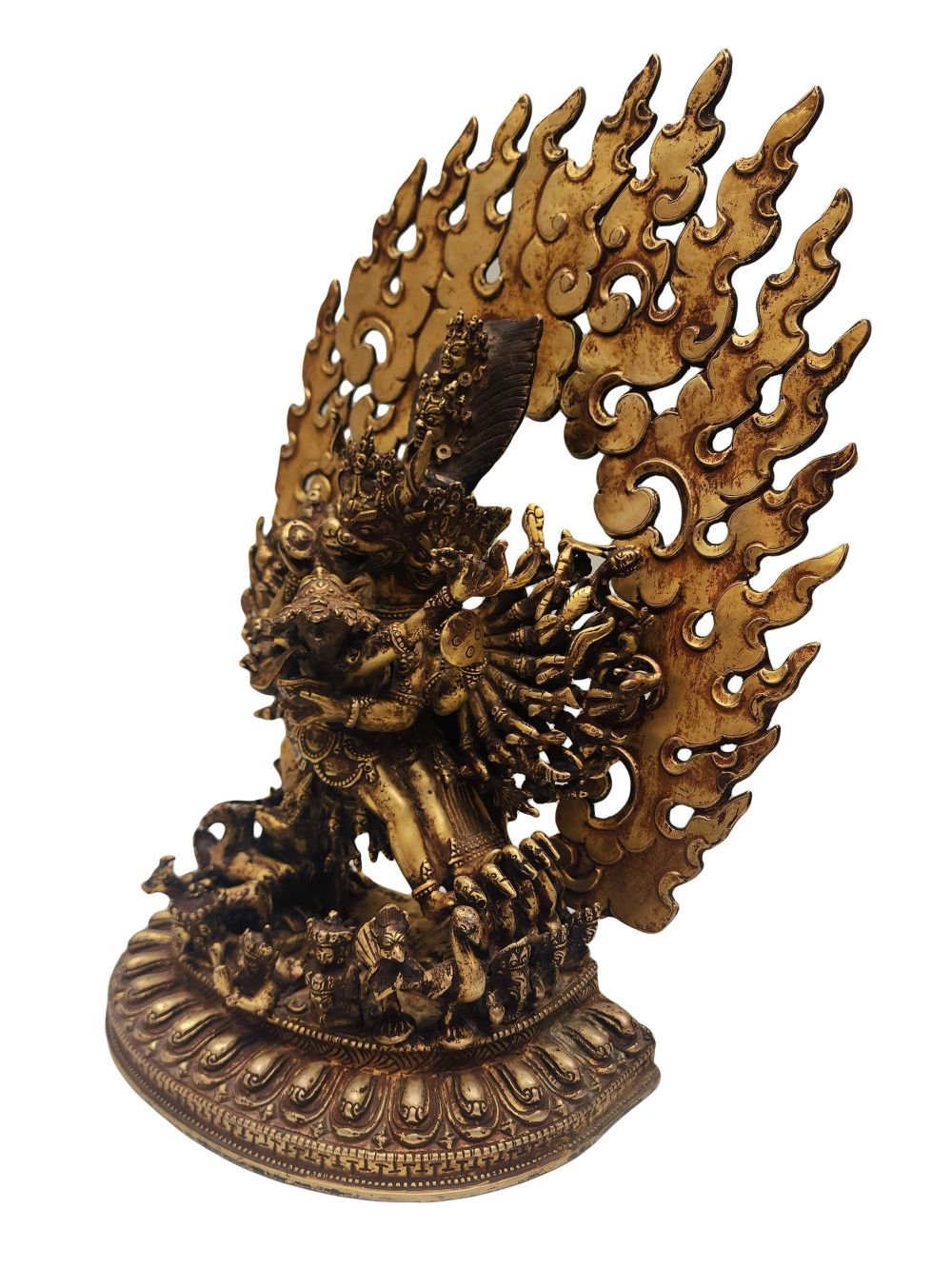 Buddhist Statue of Yamantaka, Full Fire Gold Plated, Antique Finishing , wrathful destroyer of ignorance