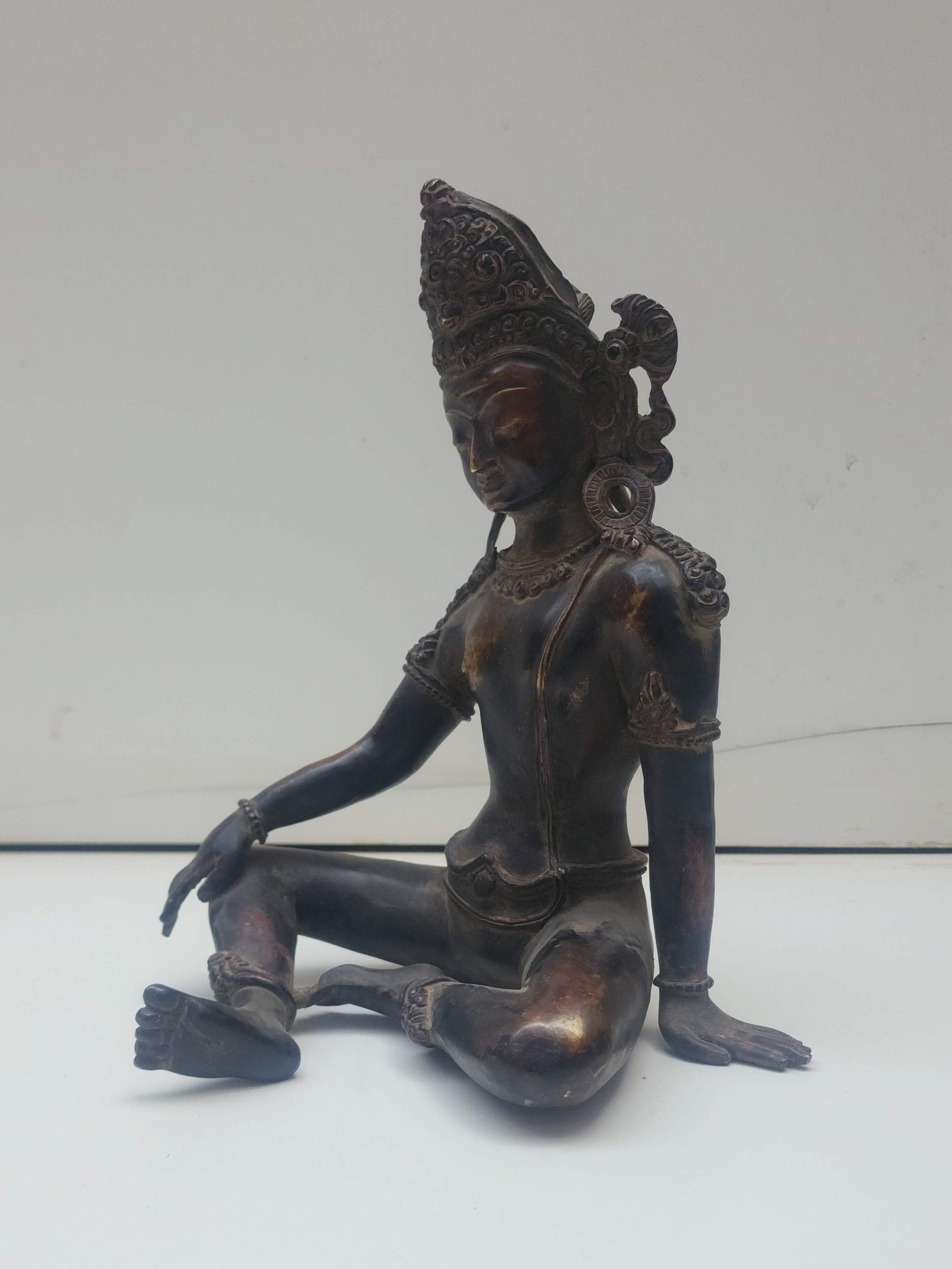 This is an antique patina-finished Indra. This is not an antique statue. It is just an antique patina finish. This Indra is a testament to the artisan's mastery of the art of aging. Its antique patina has been meticulously crafted to give the appearance of an aged statue, showcasing the artist's unique techniques and skills. Through undisclosed processes and careful aging treatments, the Indra undergoes a transformation that captures the essence of time and history. Read More