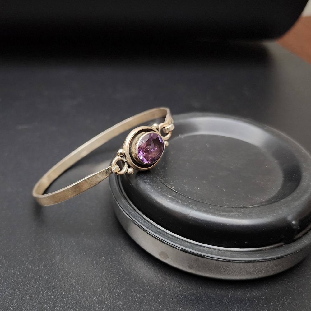 Designer Silver Jewellery Bangle Or Bracelet with Amethyst Stone |