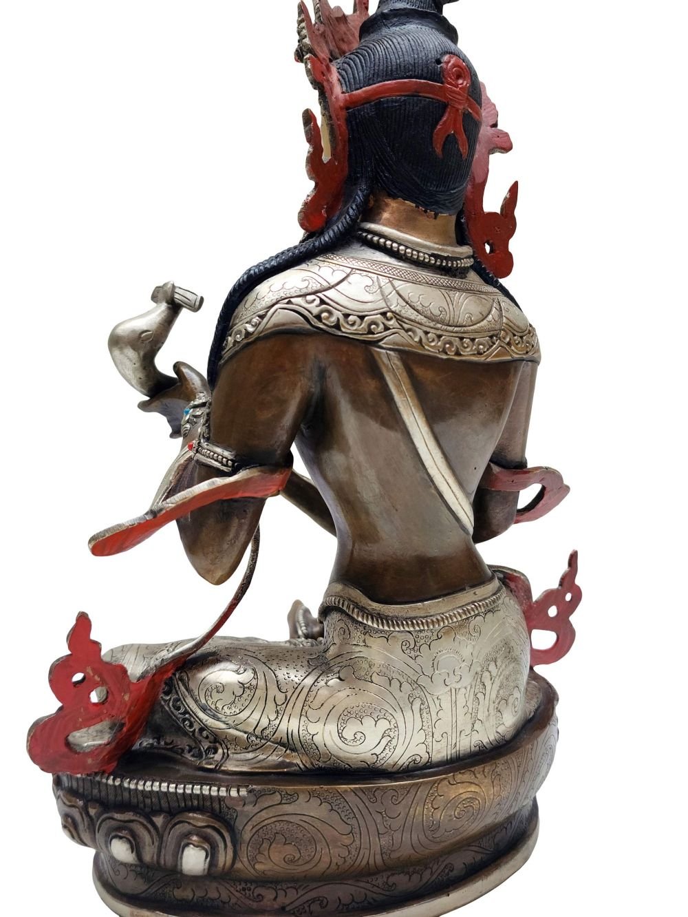 The Saraswati features a captivating combination of partly silver plating and dark oxidation. This unique finishing technique combines the lustrous shine of silver with the rich, deep tones achieved through oxidation. In the process of creating this finish, selected areas of the Saraswati are expertly silver-plated, creating a radiant and reflective surface that catches the light. The remaining areas are intentionally oxidized, resulting in a darkened patina that adds depth and character to the piece. Read More