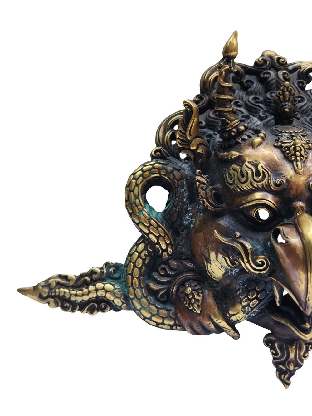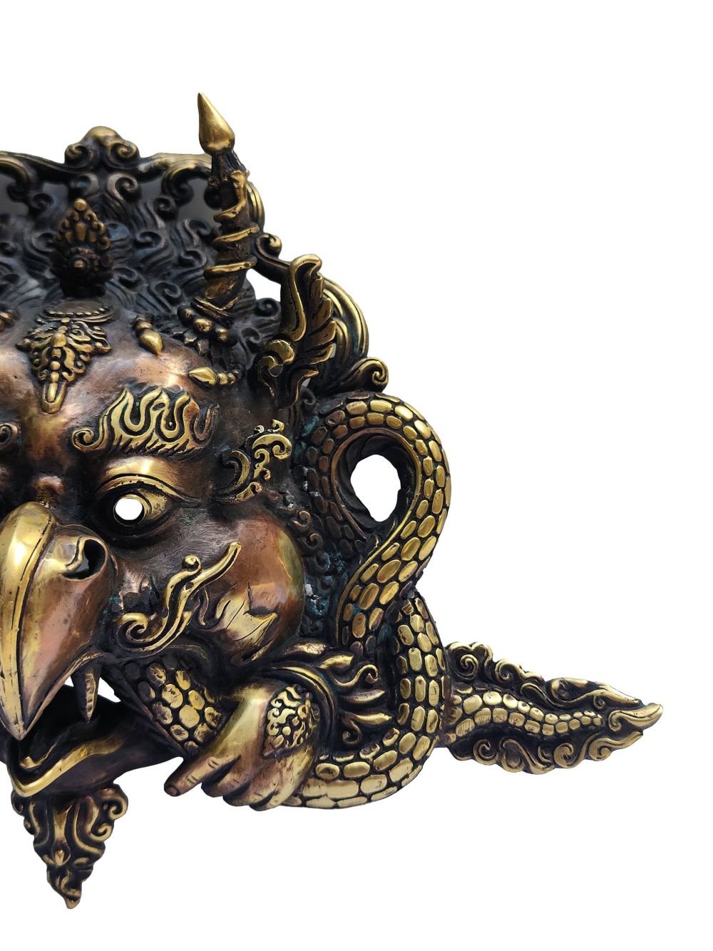 Garuda Metal Mask, Buddhist Handmade Ritual Mask, Antique Finishing , Divine Eagle, Protector and Enemy of Evil Forces