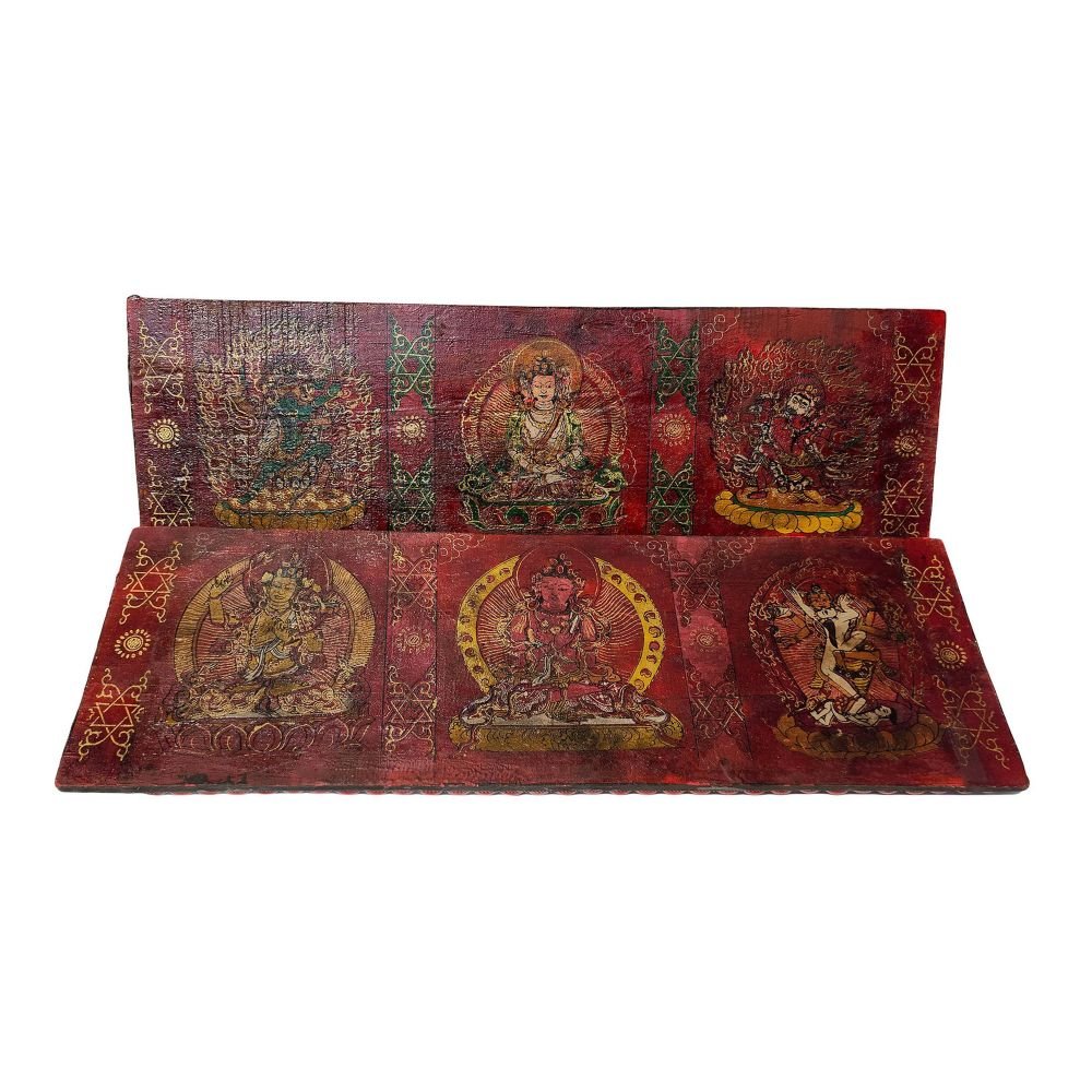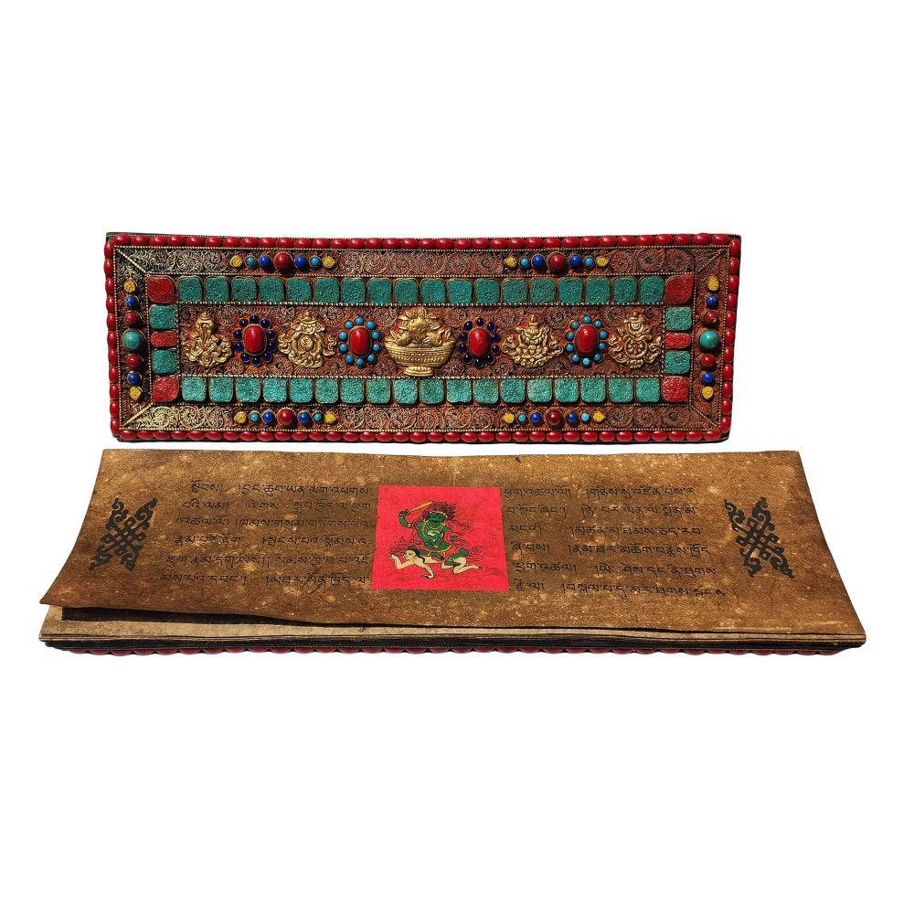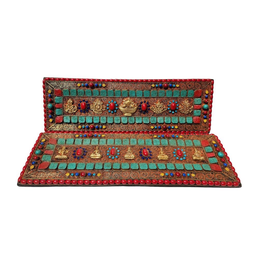 Book Cover, Buddhist Old Tibetan Wooden Seku Book Cover, Stone Setting |