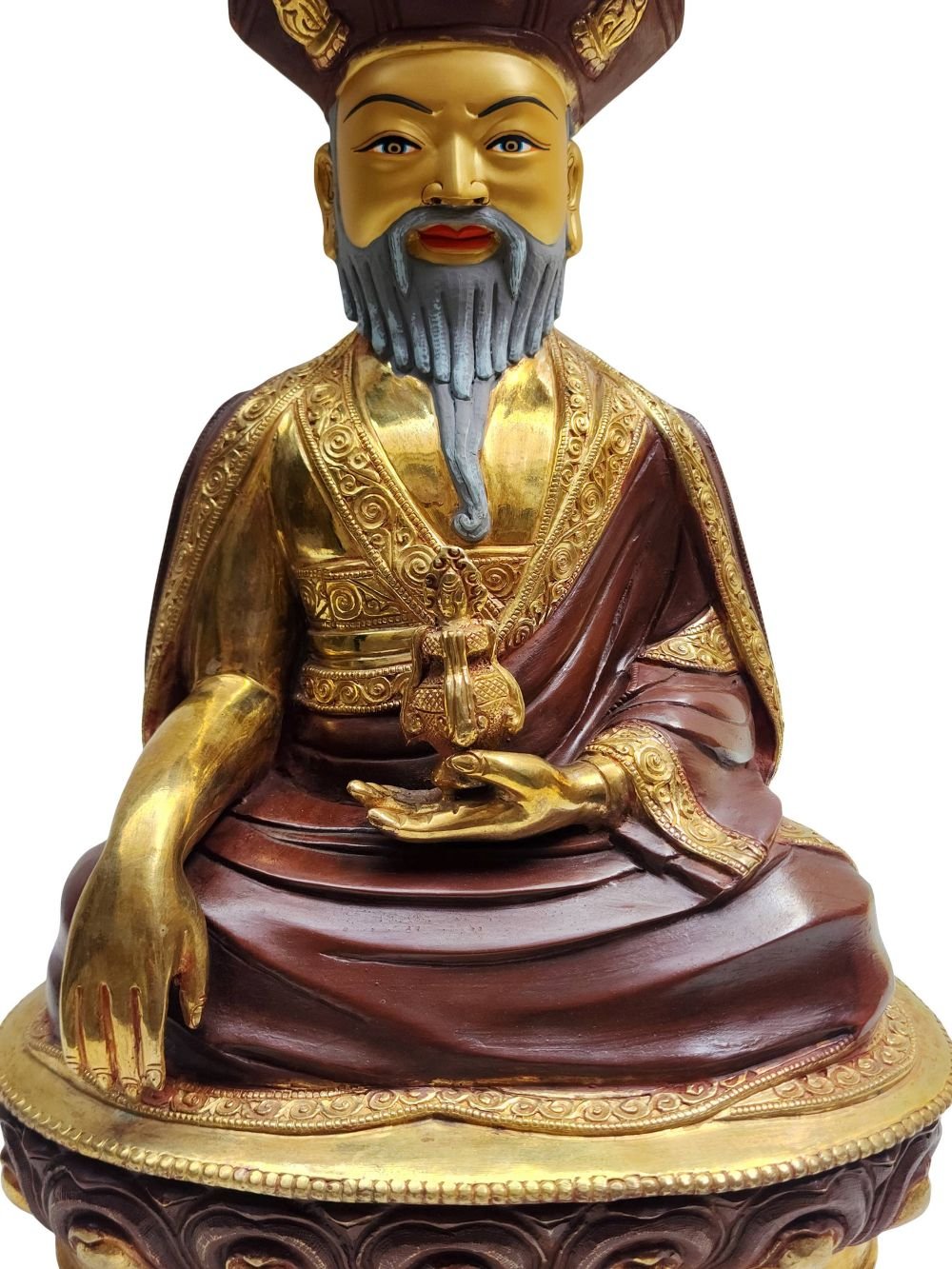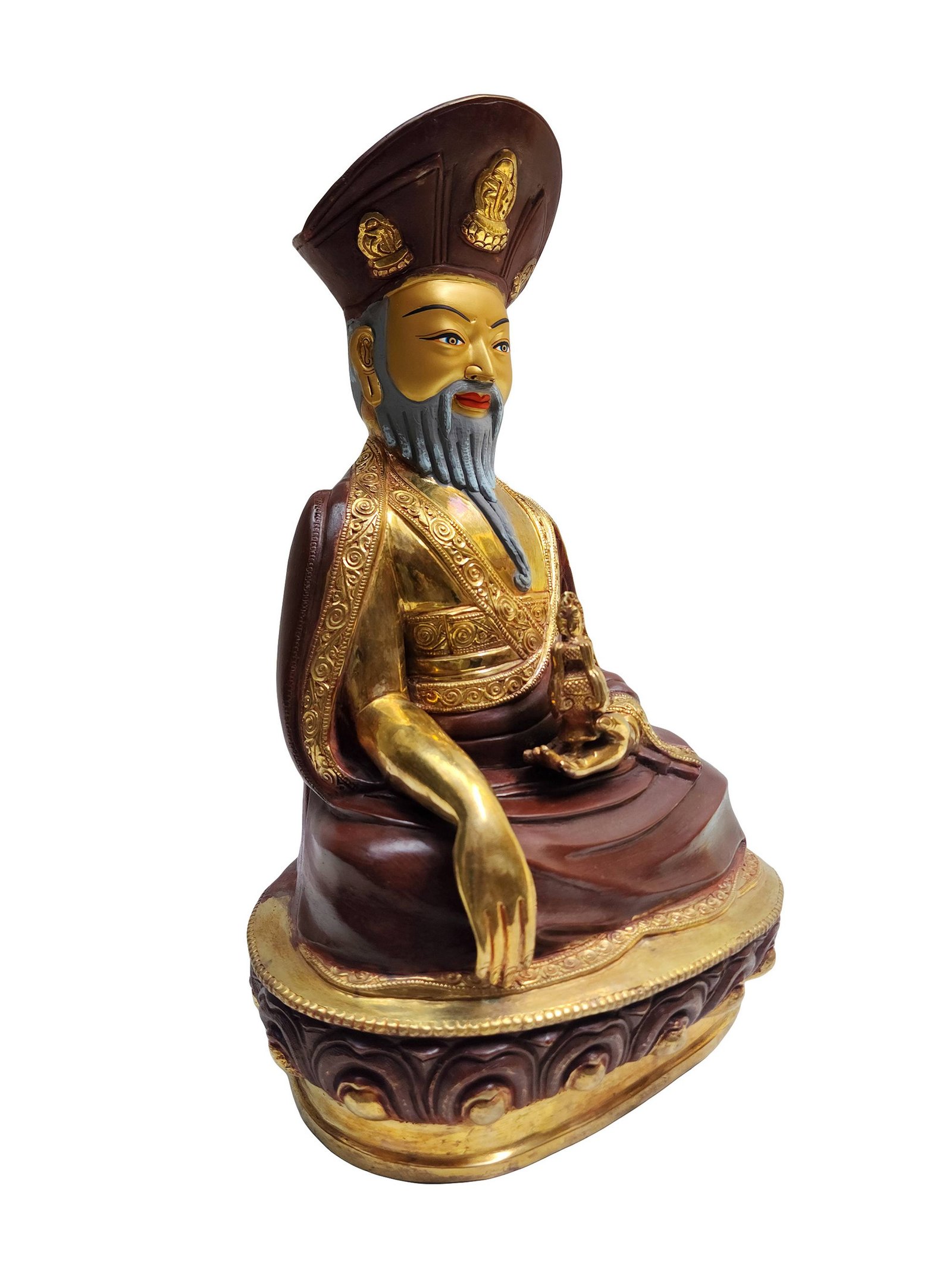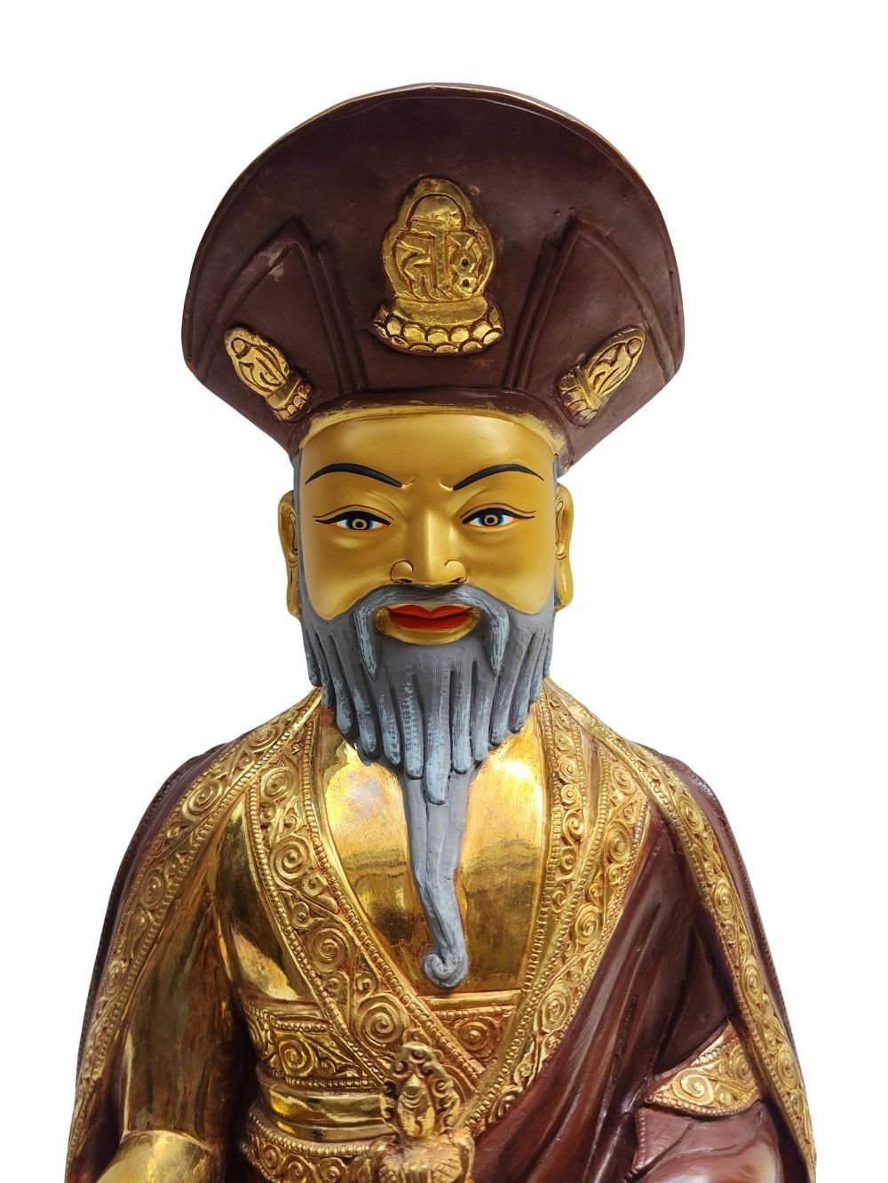 The 4th Zhabdrung Rinpoche Statue, Buddhist Handmade Statue, Partly Gold Plated, Face Painted , Spiritual and political leader of Bhutan
