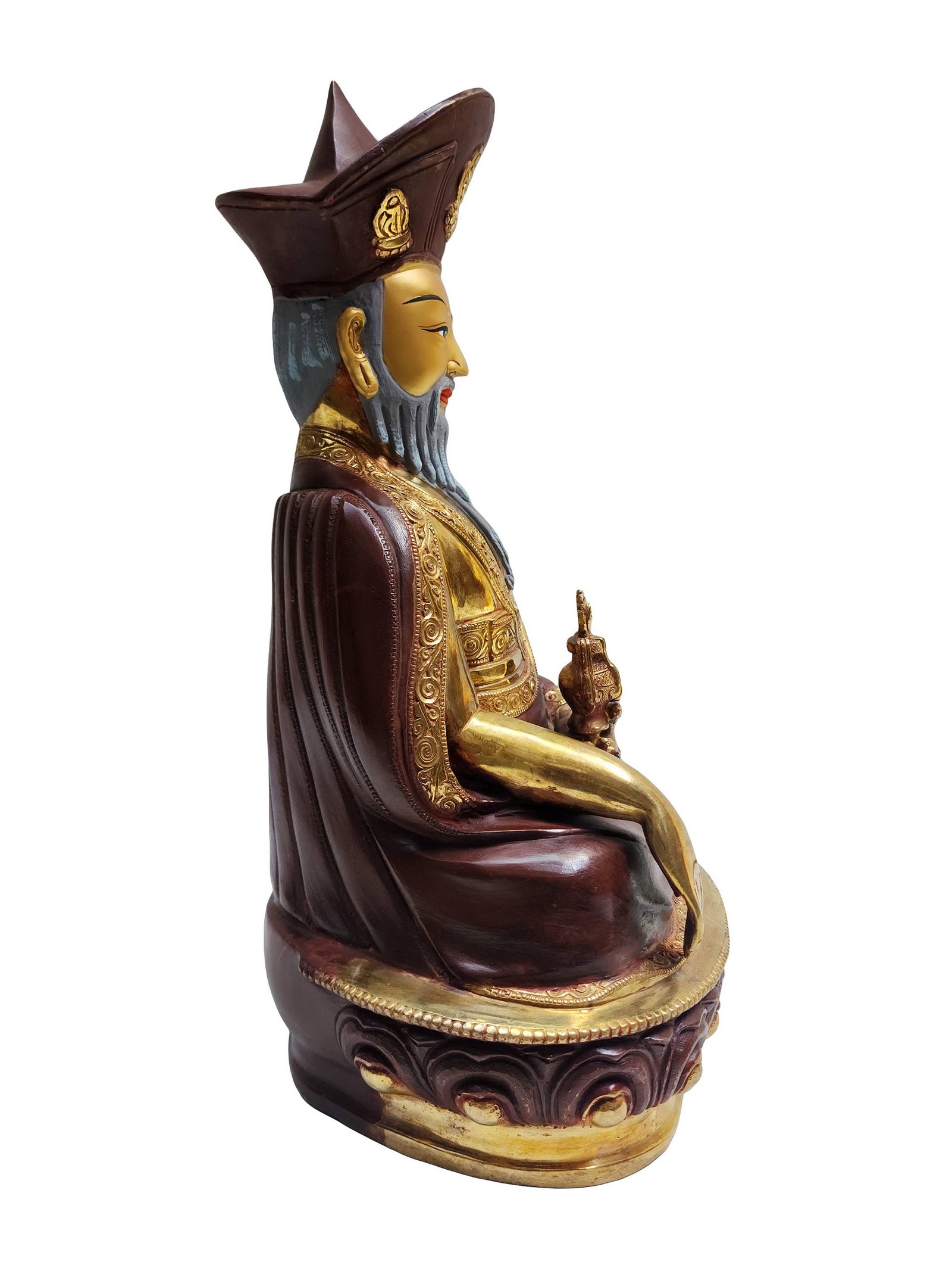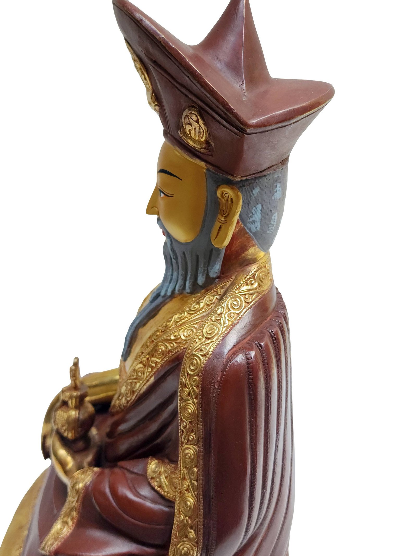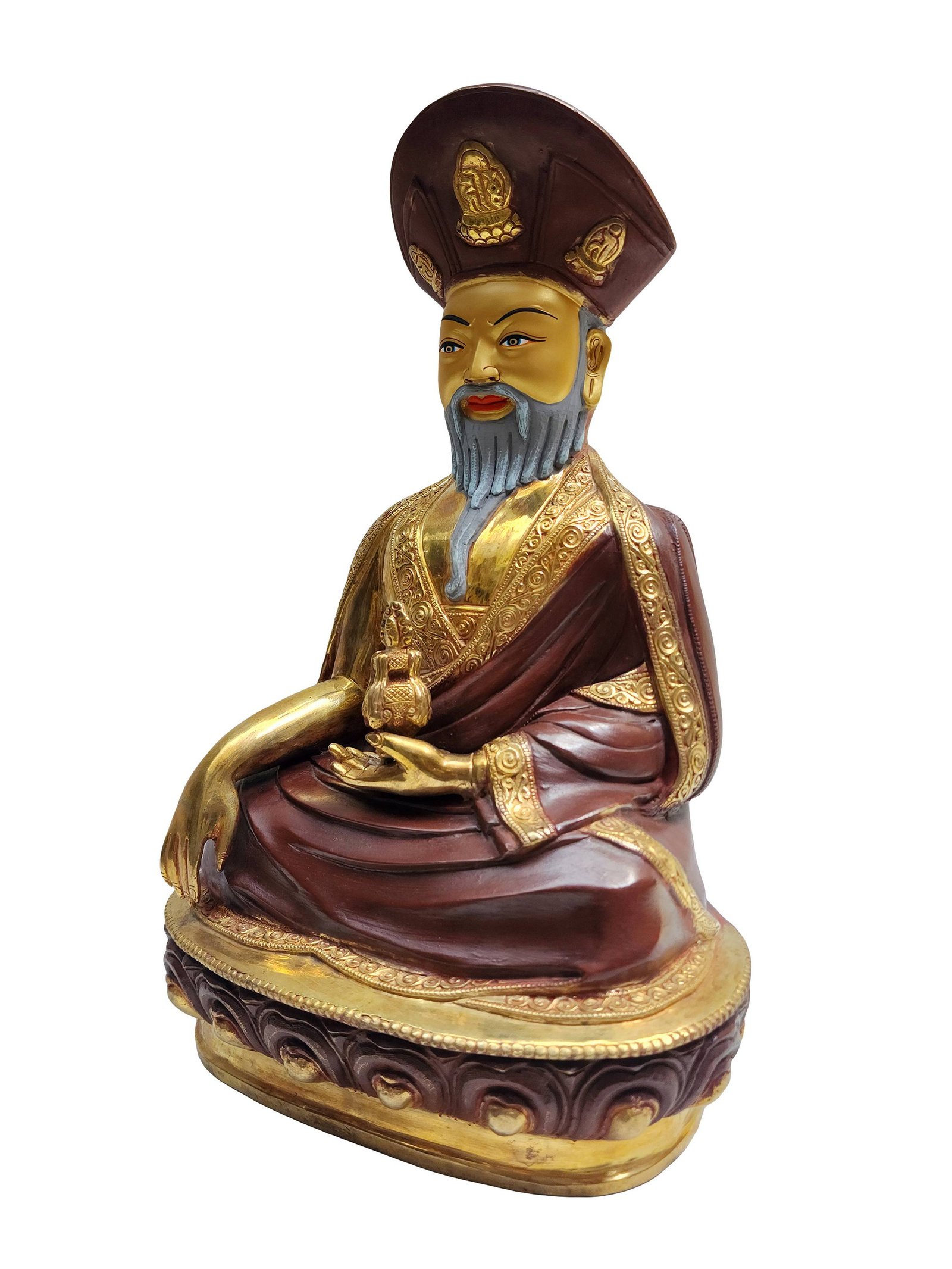 The 4th Zhabdrung Rinpoche Statue, Buddhist Handmade Statue, Partly Gold Plated, Face Painted , Spiritual and political leader of Bhutan