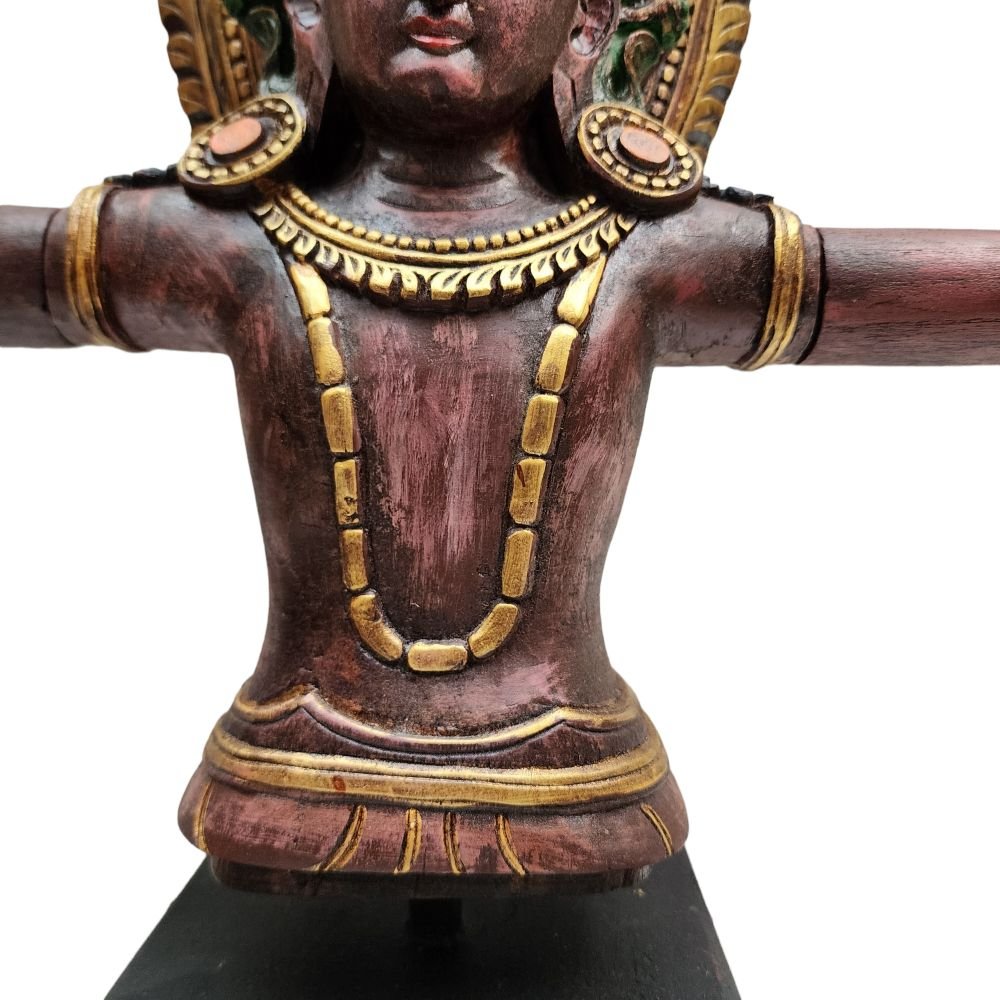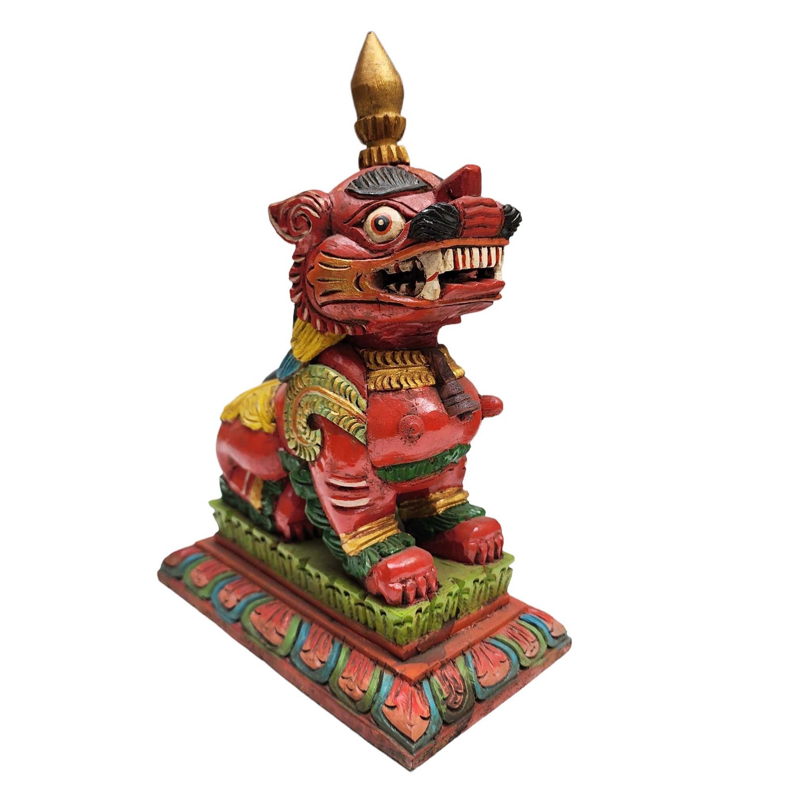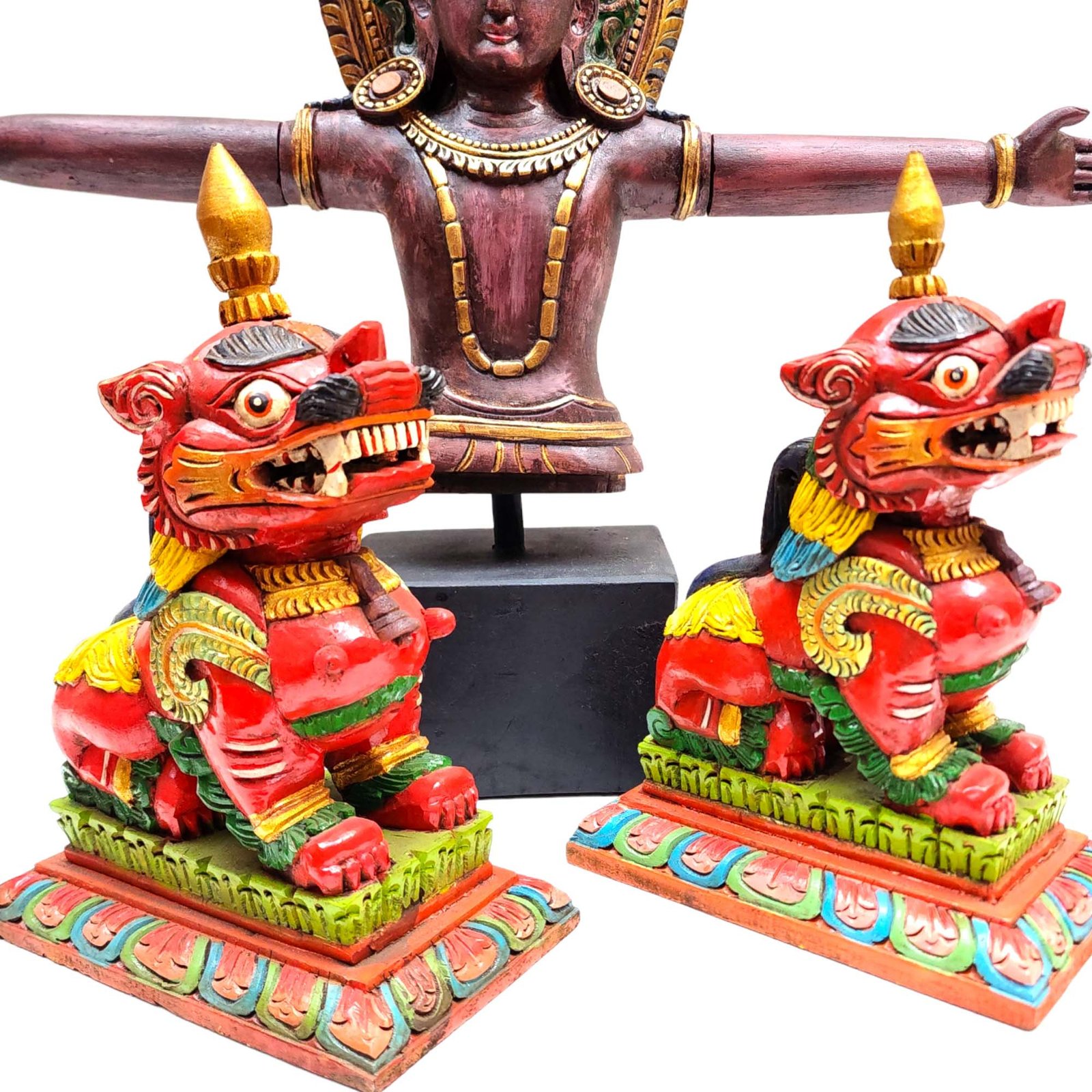 Indra - God of Rain, Wooden Handmade Statue of Indra, with Detachable Hand, and Painted, Rare Find Form of Indra Jatra In Kathmandu, Plus Two Temple LIONS , King of the Gods, Lord of Rain and Thunder