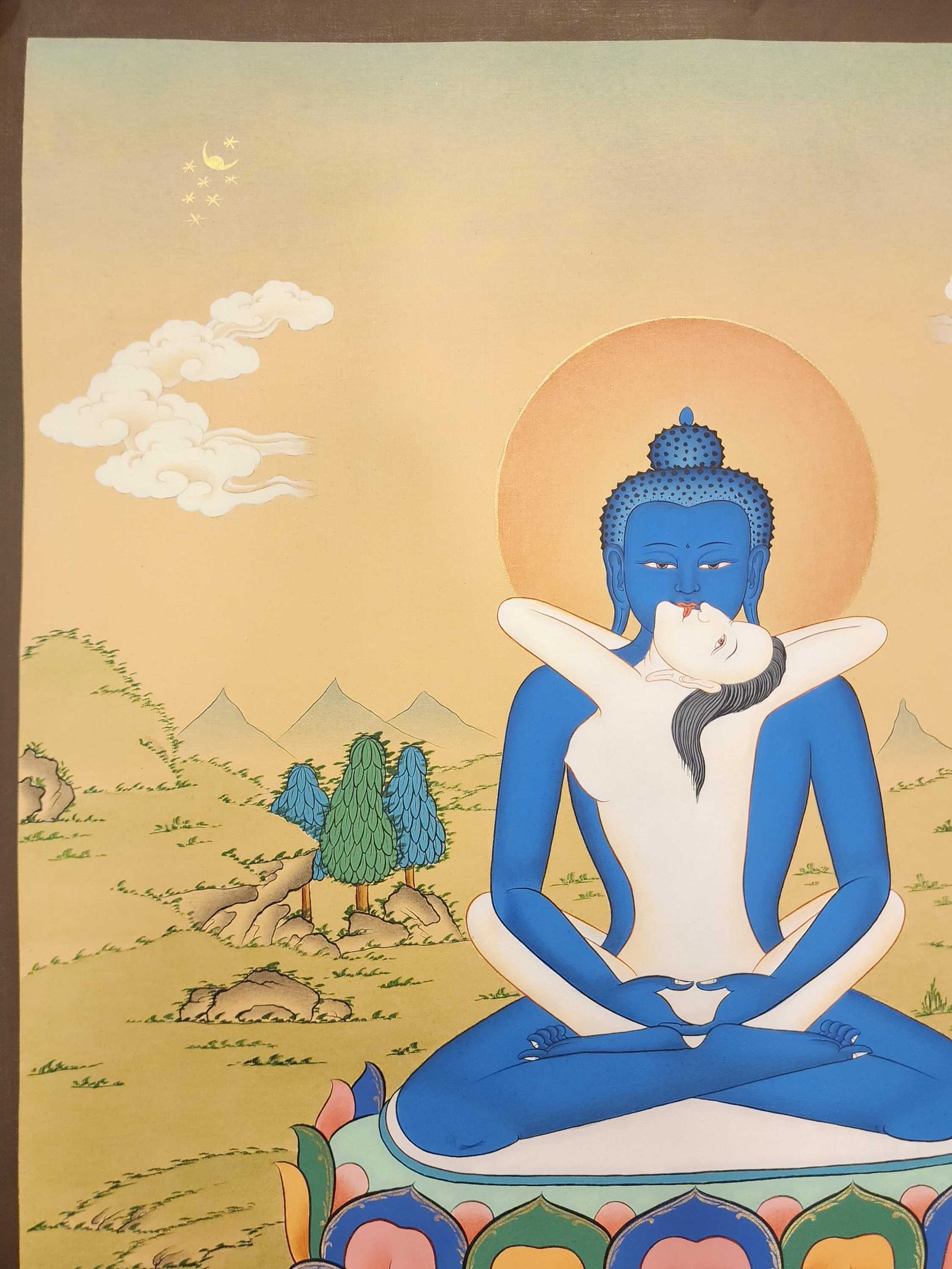 Samantabhadra Thangka, Buddhist Traditional Painting, Tibetan Style Karma Gadri Art , Bodhisattva of universal virtue, embodying practice and compassion