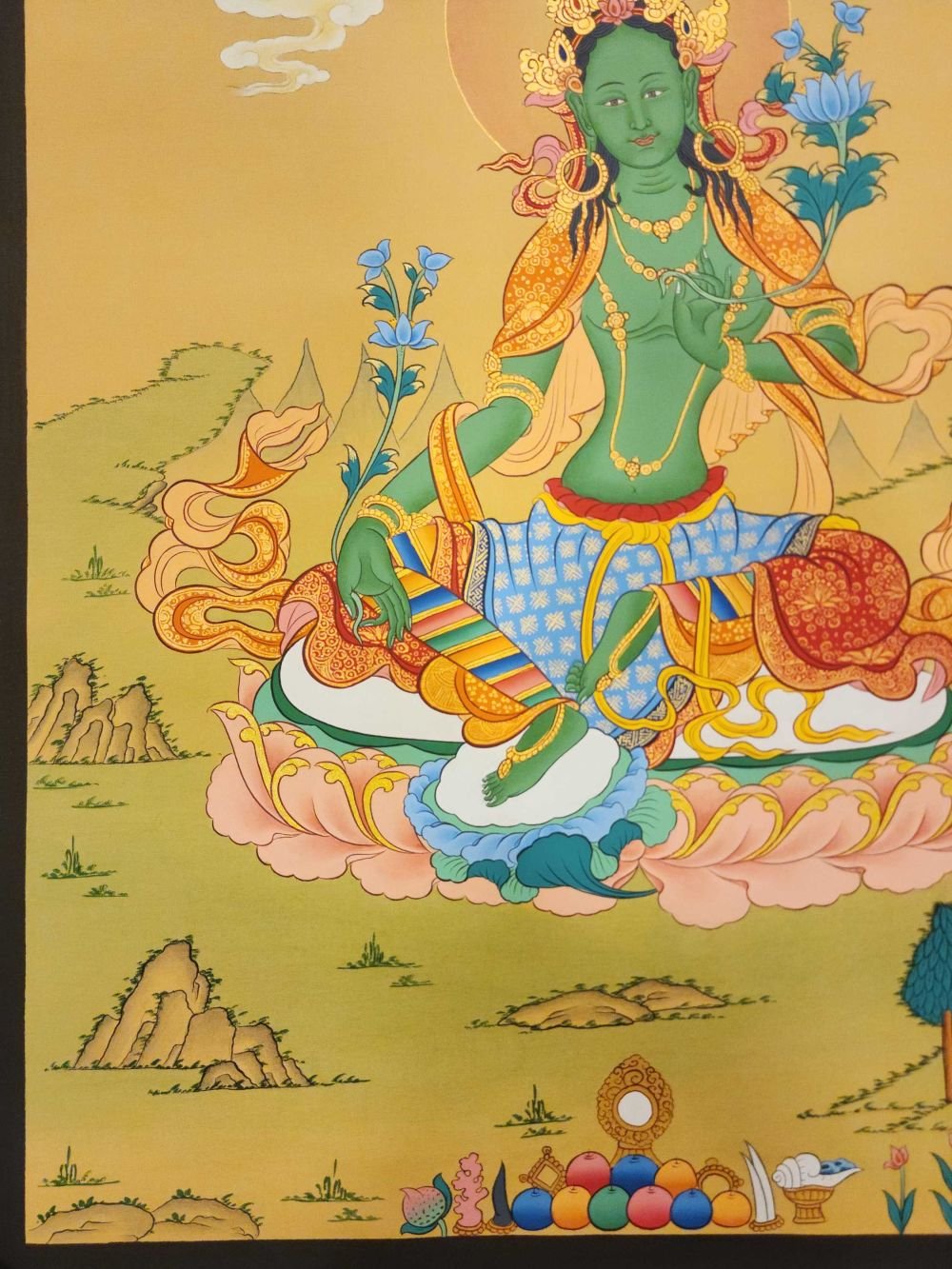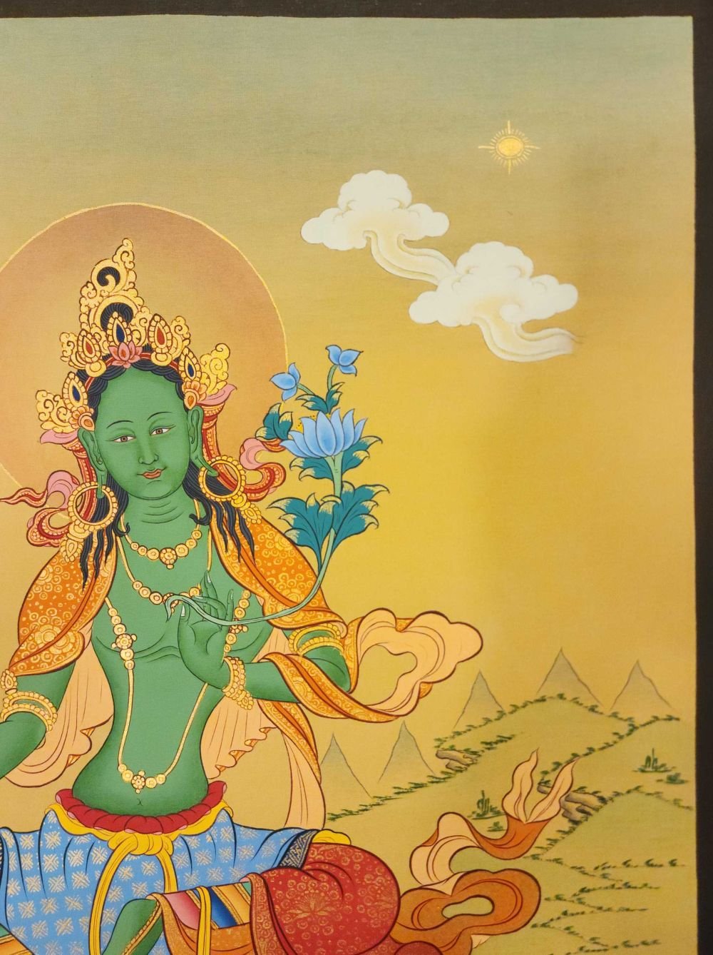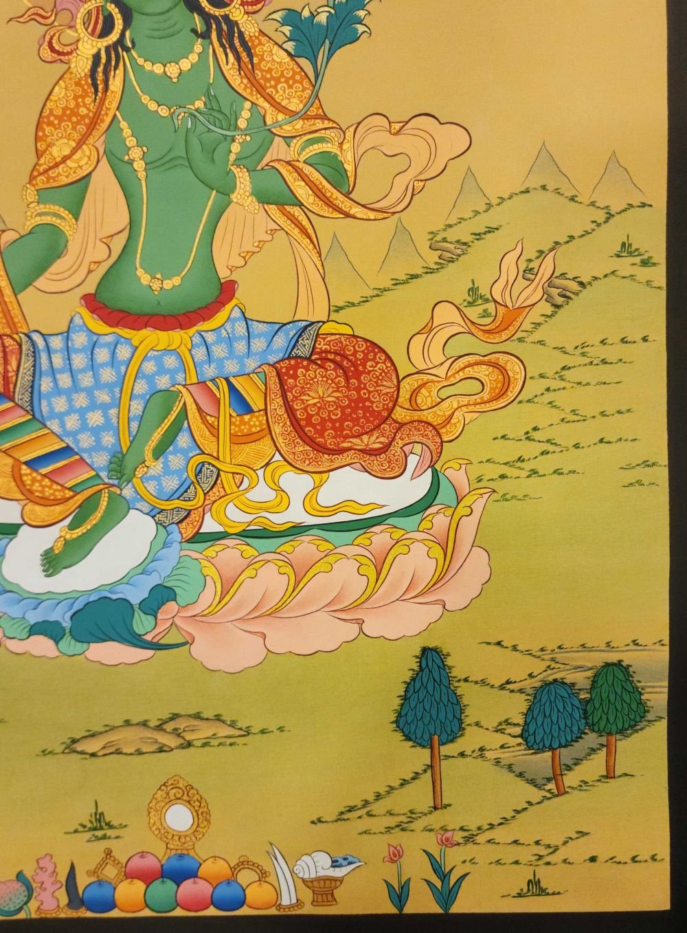 Green Tara Thangka, Buddhist Traditional Painting, Tibetan Style Karma Gadri Art , Goddess of Compassion, Protection, and Swift Action