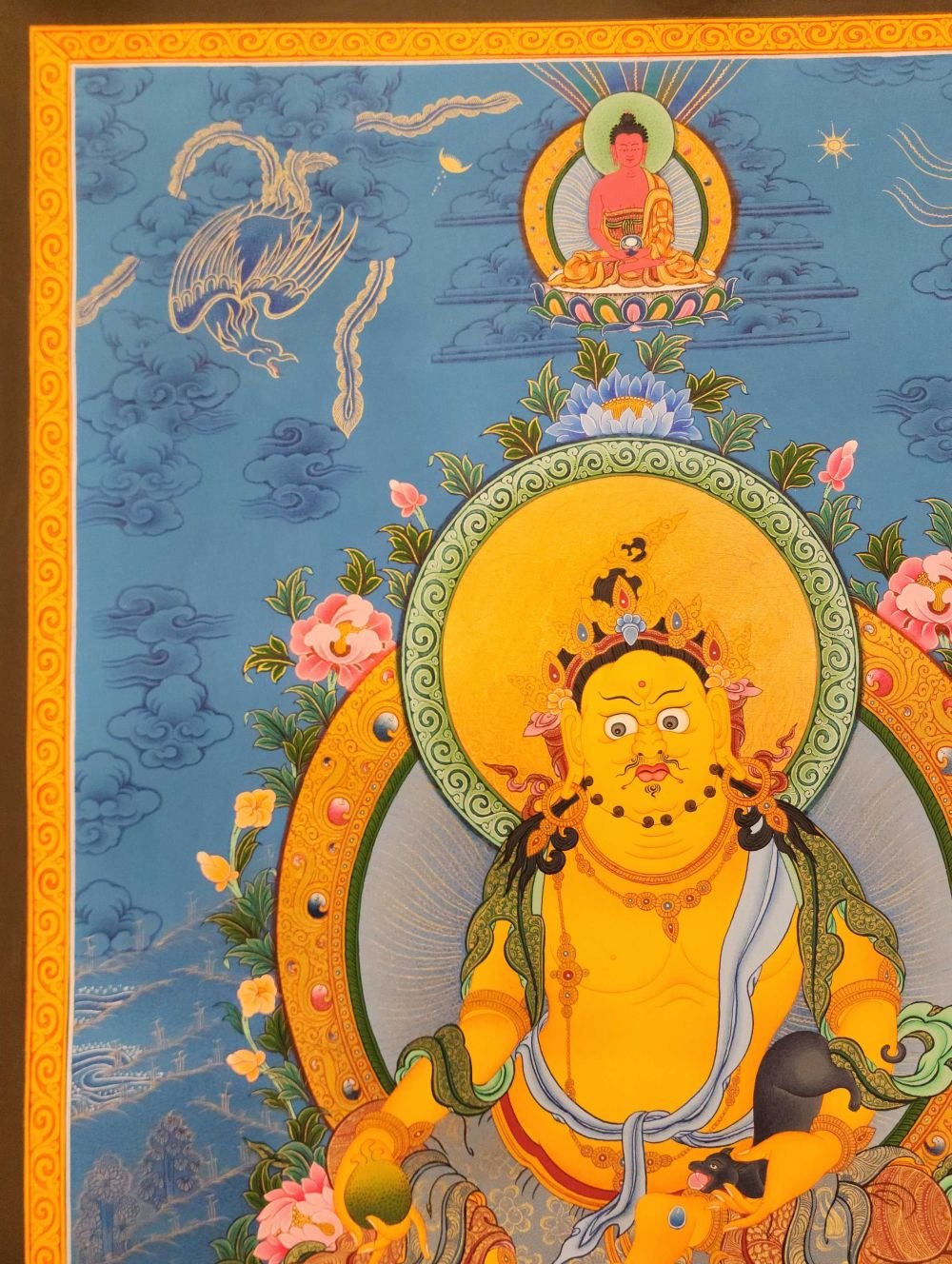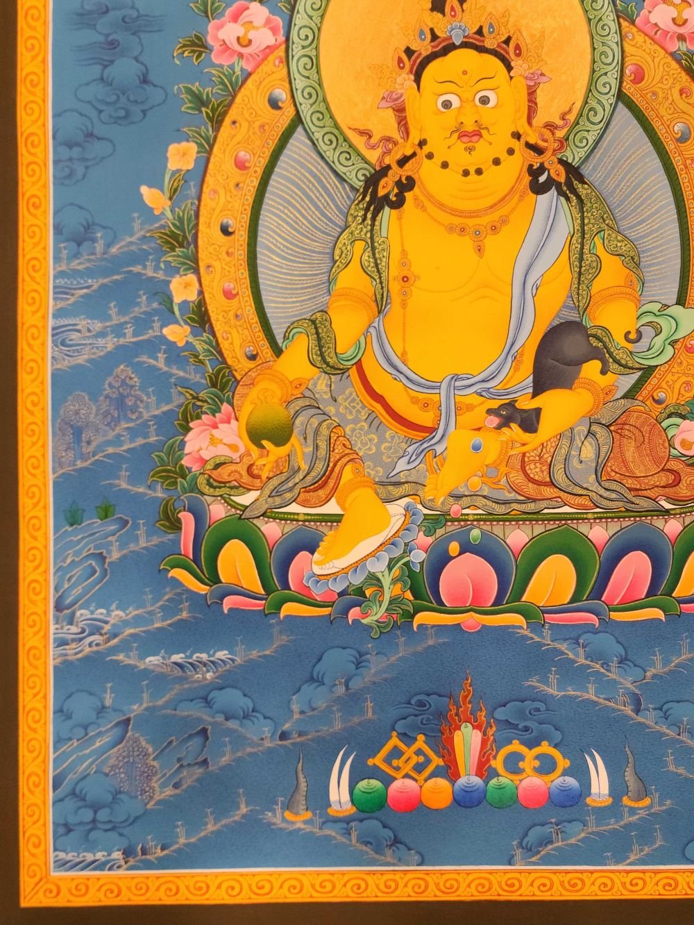 Yellow Jambhala Thangka, Buddhist Traditional Painting, Tibetan Style, Real Gold, Hand Painted , fostering generosity and abundance