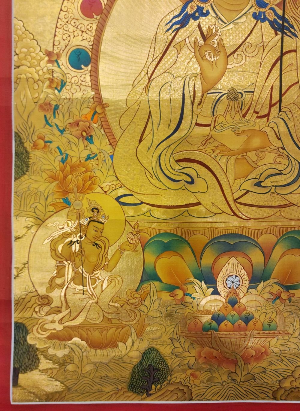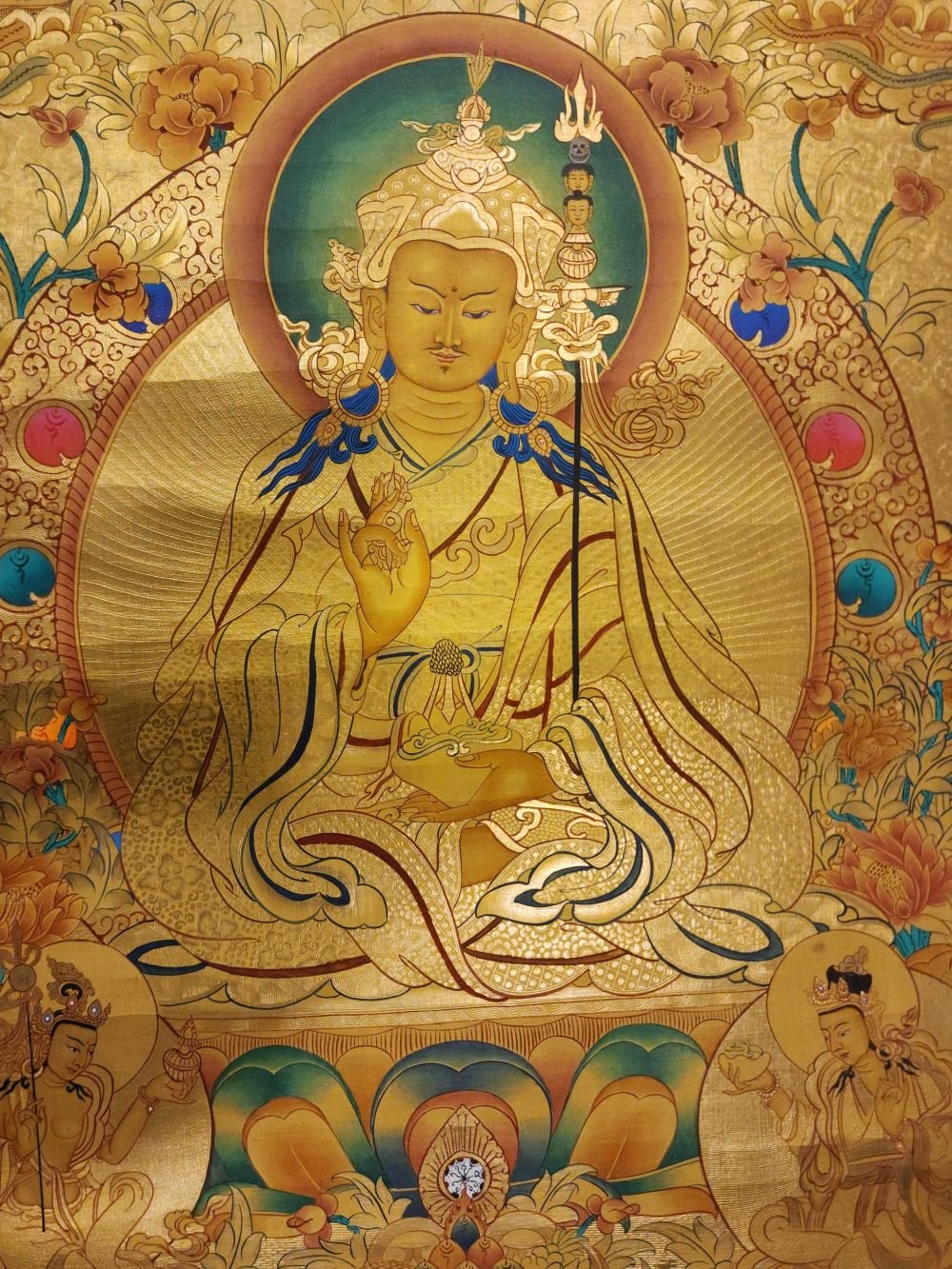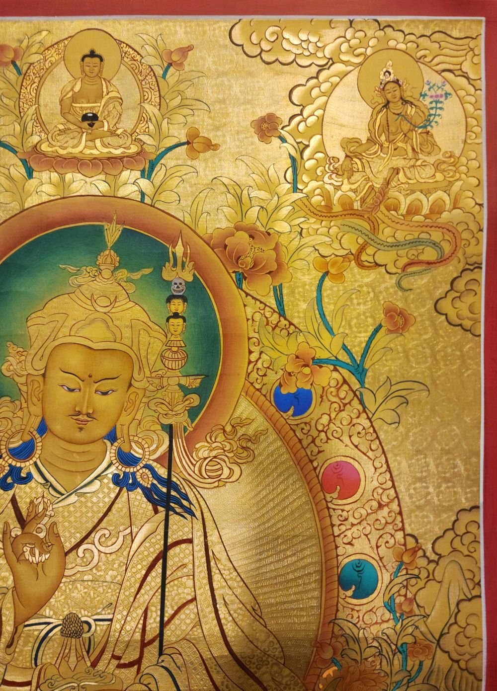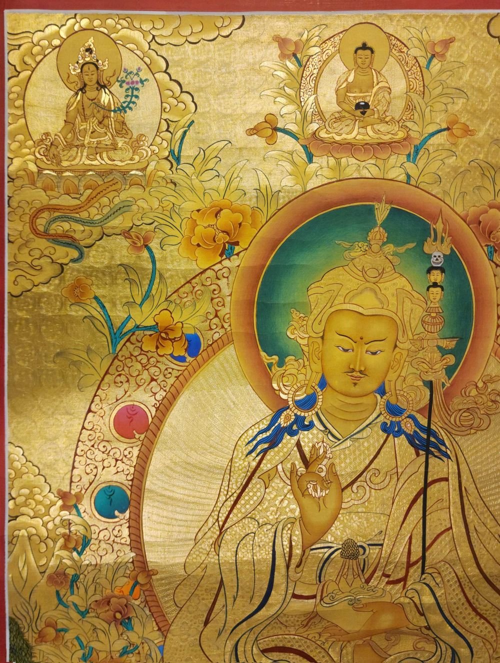 Padmasambhava Thangka, High Quality, Buddhist Traditional Painting, Lhyape Style, Real Gold , The lotus-born master, wisdom beyond time