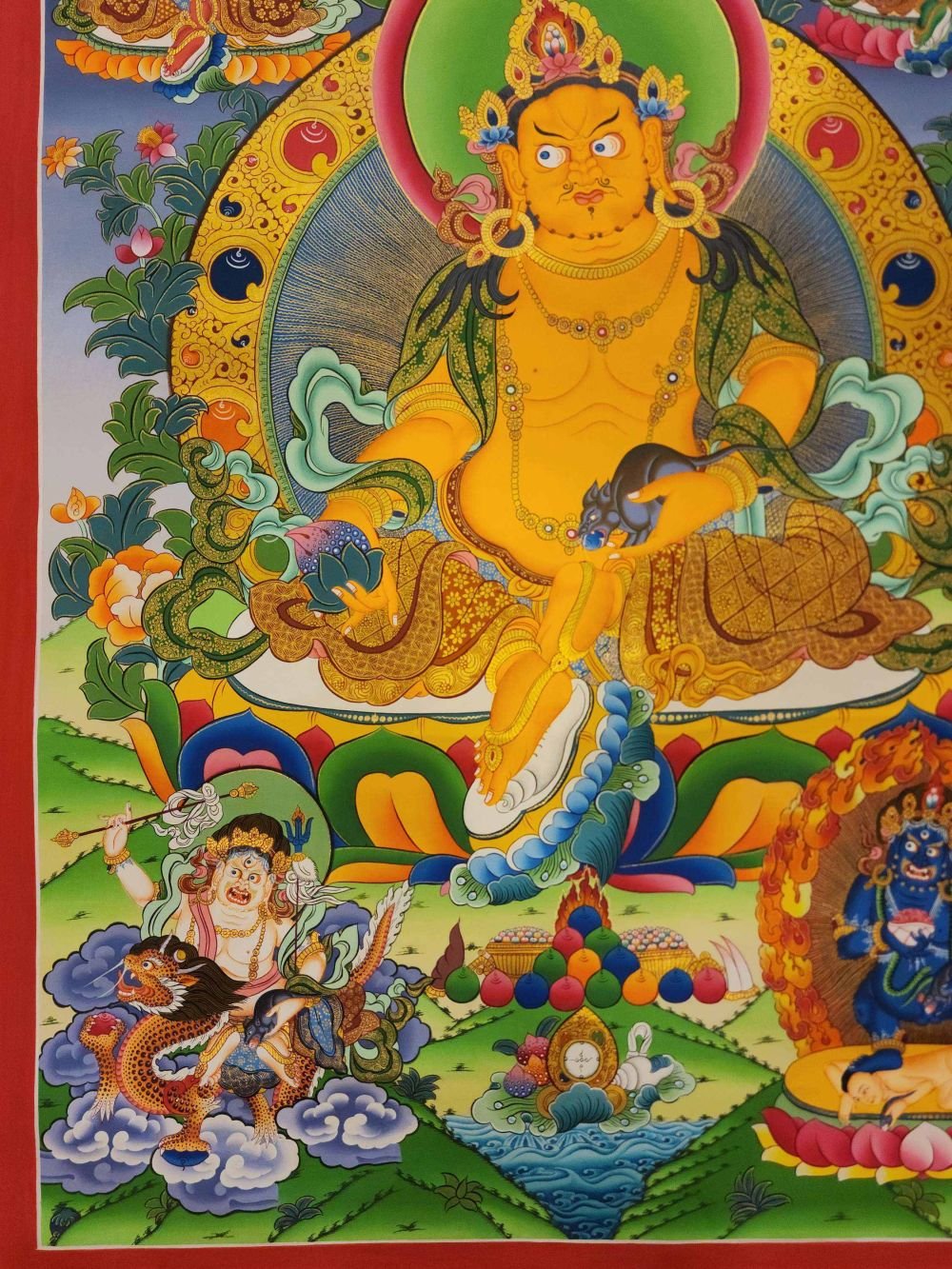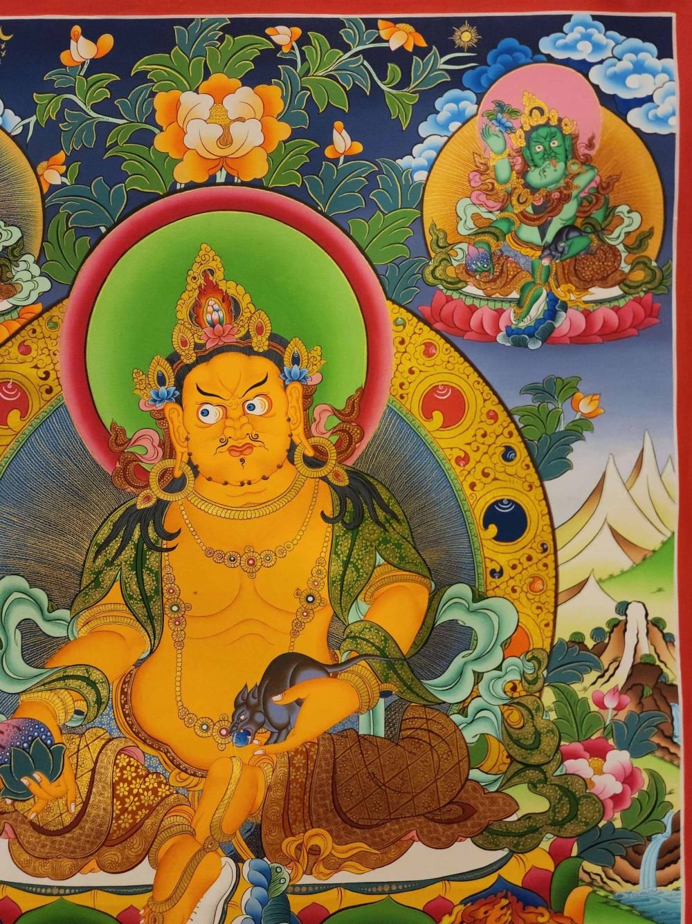 Five Pancha Jambhala Thangka, Master Quality, Buddhist Traditional Painting, Tibetan Style, Real Gold , Five Wealth Deities, Bringing Prosperity, Fortune, and Generosity
