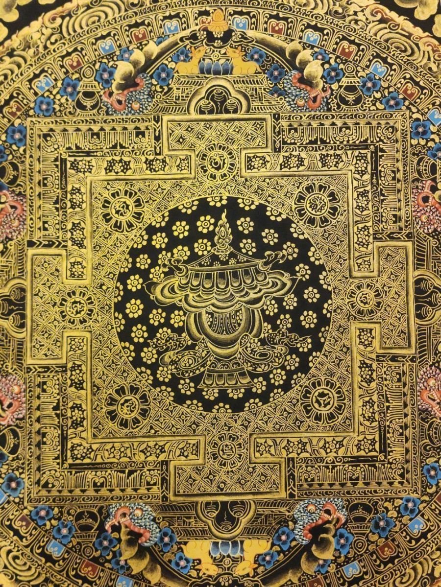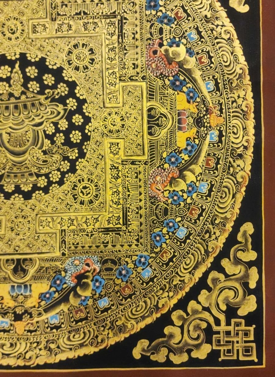 Mandala Thangka, Black and Gold, Buddhist Traditional Hand Painting, Tibetan Style, Fast Selling |
