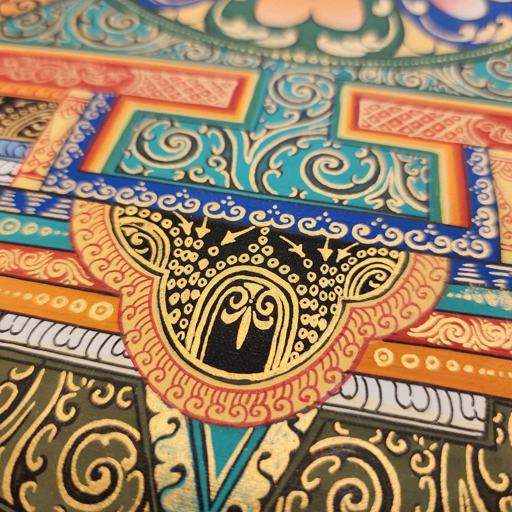 Mandala Thangka painting is a revered form of sacred art in Buddhism, characterized by intricate and vibrant depictions on cotton or silk. These paintings often feature a central deity or Buddha figure surrounded by meticulously crafted symmetrical patterns, geometric designs, and symbolic elements. Mandala Thangkas serve as visual aids for meditation and spiritual growth, guiding practitioners towards inner peace, harmony, and enlightenment. Through their precise brushwork and rich symbolism, these artworks invite viewers to contemplate the profound spiritual journey within themselves, fostering mindfulness, concentration, and a deeper connection with the universal truths of Buddhism. Read More