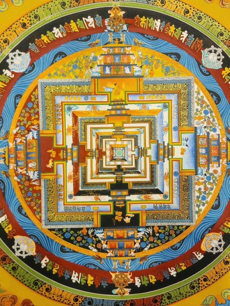 The Kalachakra sand mandala is dedicated to peace and physical balance, both for individual and for the world, thanks to the deities carefully among minute human, animal and floral forms, abstract pictographs, and the Sanskrit syllables that comprises the mandala's design.