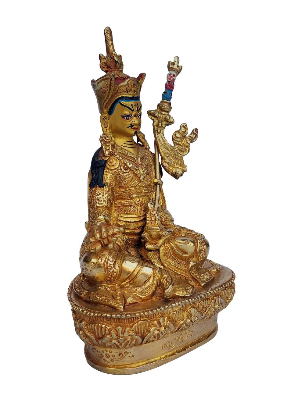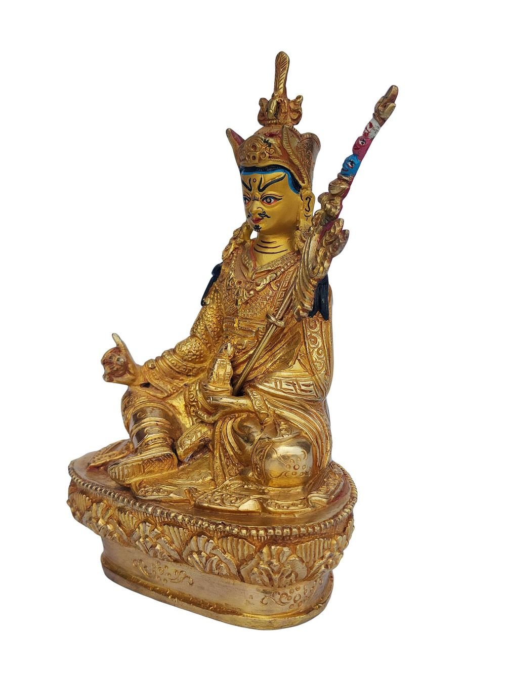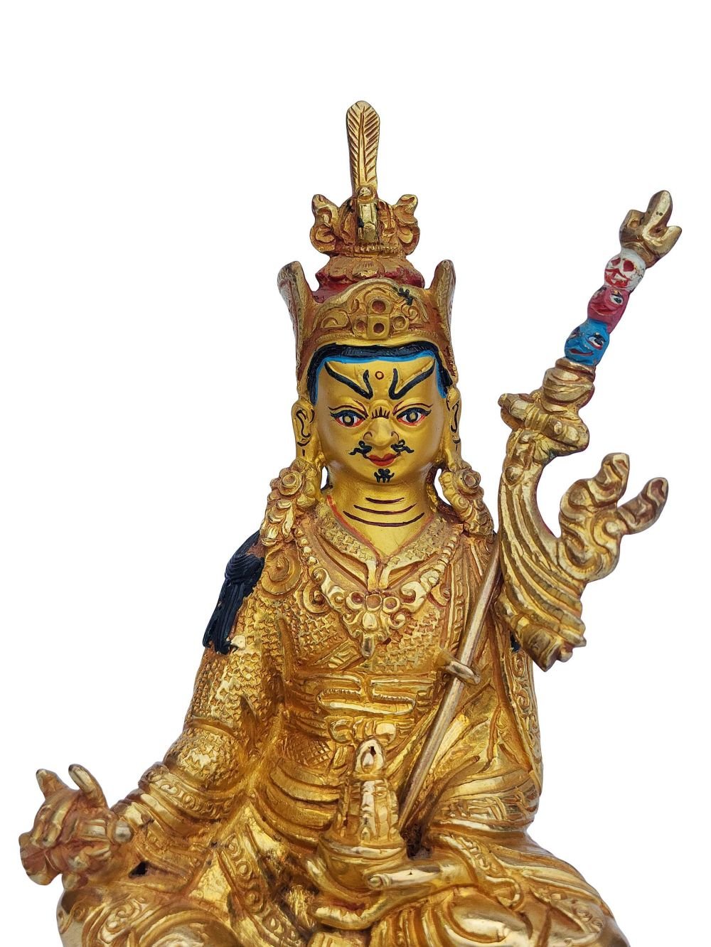 Padmasambhava, Buddhist Handmade Statue, Face Painted, Gold Plated , The lotus-born master, wisdom beyond time