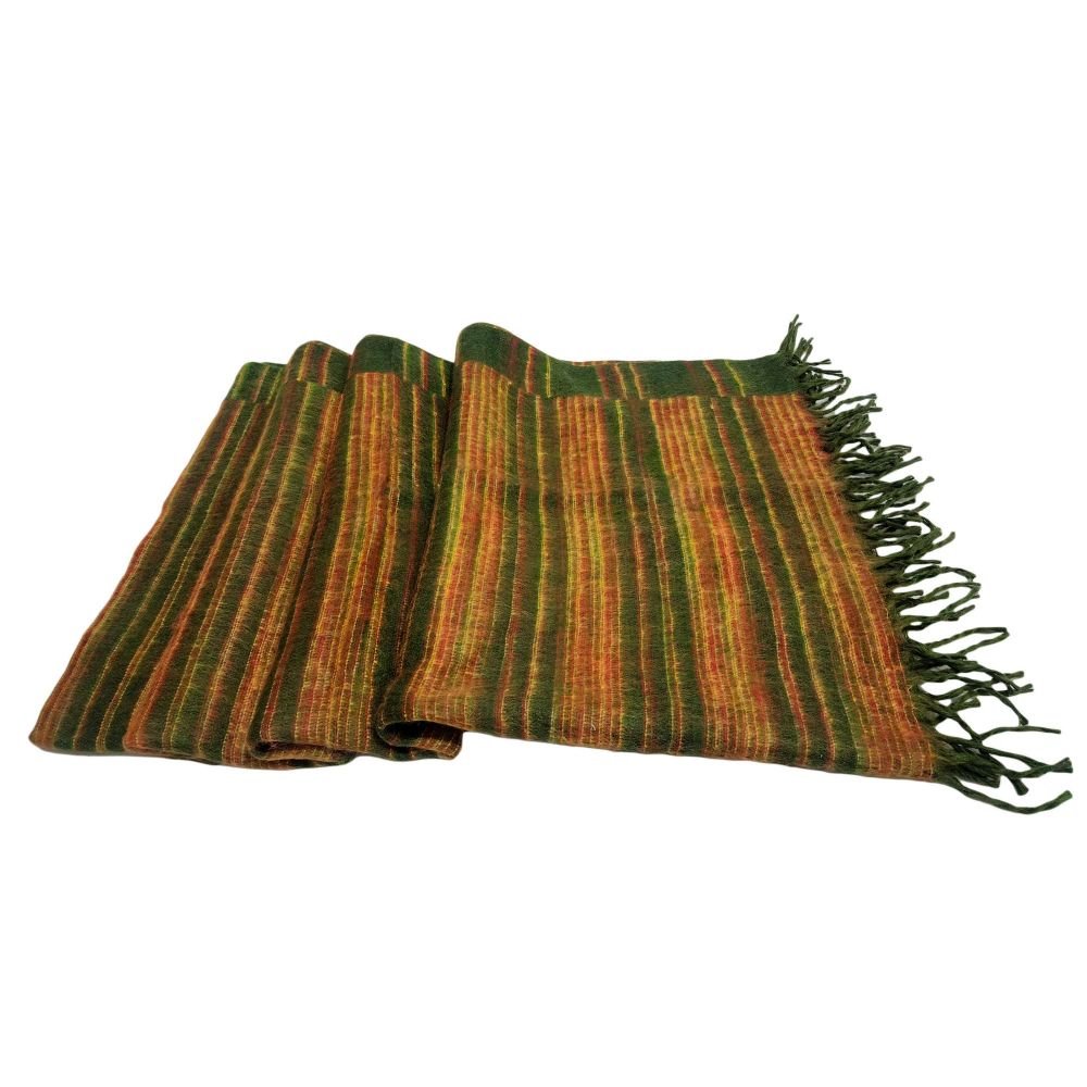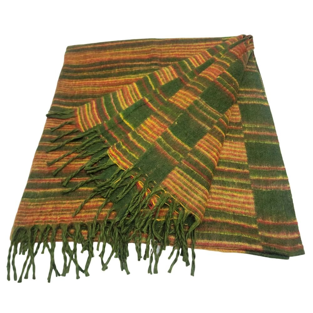 Tibet Shawl, Dress To Impress: Acrylic Woolen Shawls For Any Occasion, In Dark Forest Green Color and Stripes |