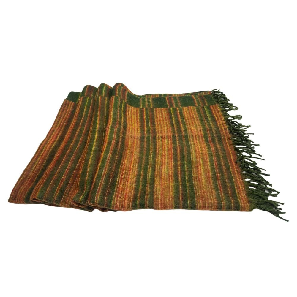 Tibet Shawl, Elevate Your Outfit with Acrylic Woolen Shawls, In Dark Olive Green Color and Stripes |