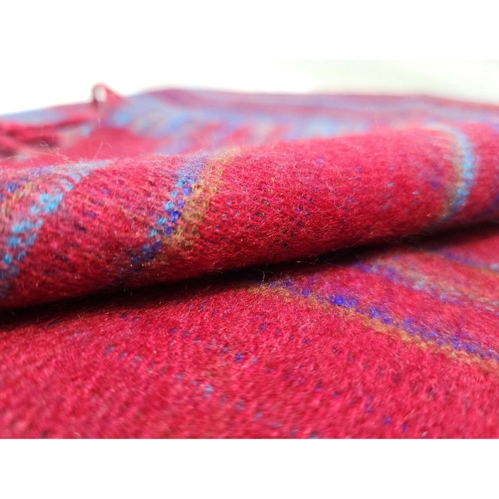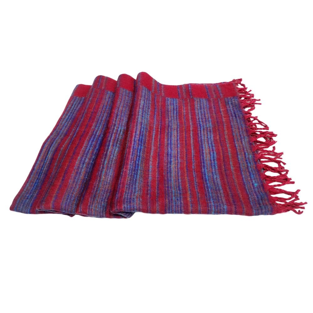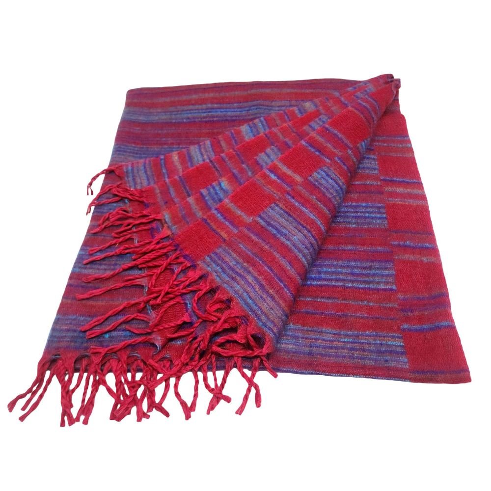 Tibet Shawl, Brighten Up Your Outfit with Vibrant Acrylic Woolen Shawls, In Raspberry Color and Stripes |