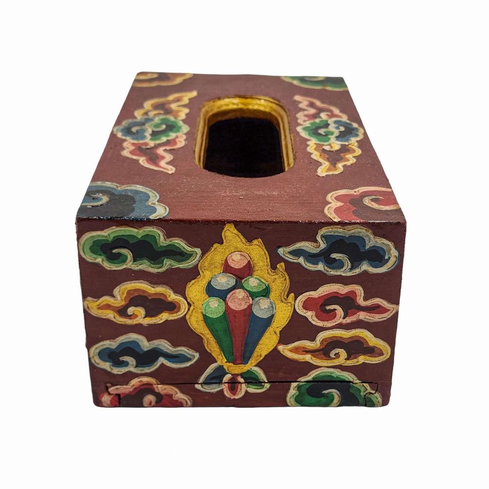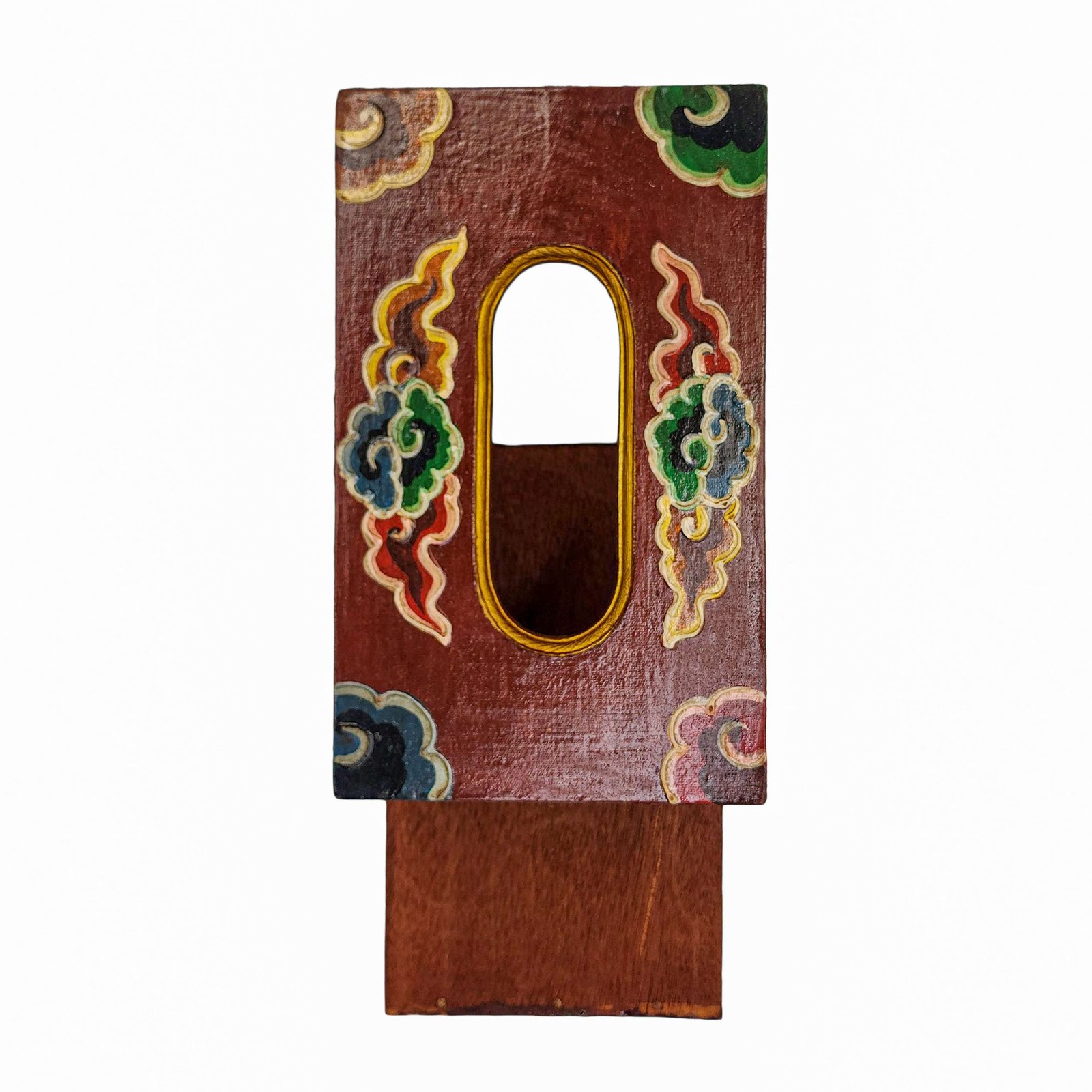 Tibetan Color Palette: Painted in the alluring colors reminiscent of Tibetan art, the tissue holder emanates an aura of serenity and tranquility. The beautiful hues of red, blue, green, and gold evoke a feeling of cultural enchantment, creating a harmonious atmosphere wherever it's placed.