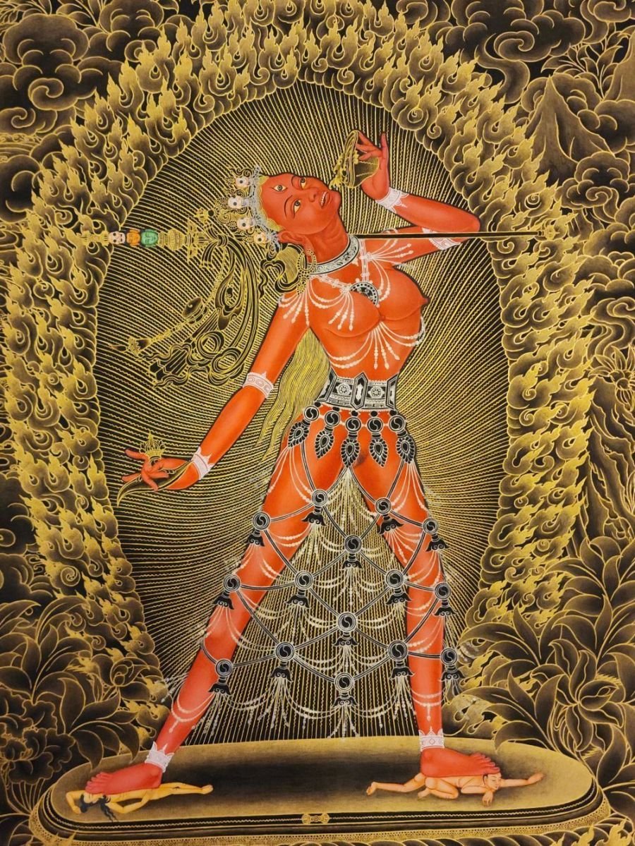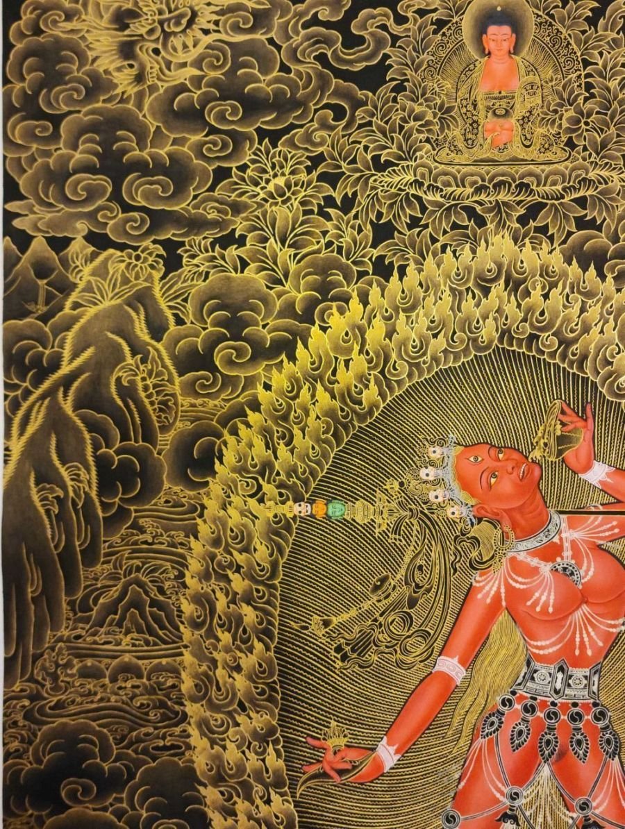 Vajrayogini Thangka, Master Quality, Buddhist Traditional Painting, Tibetan Style, Real Gold, Rare Find