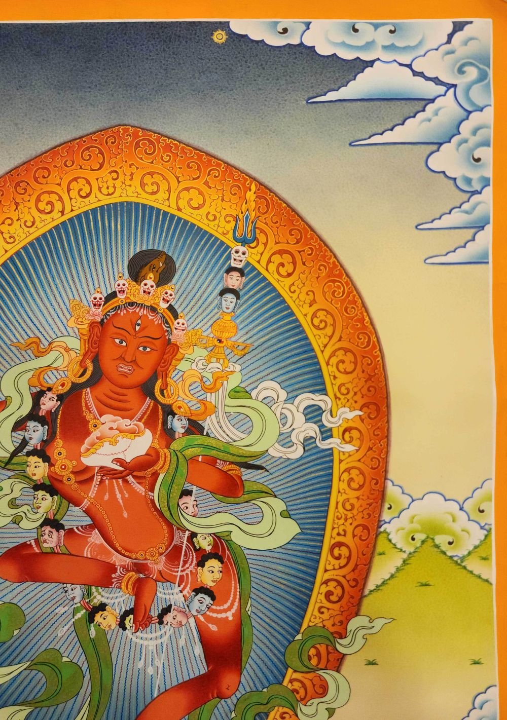 Vajravarahi - Dorje Phagmo Yogini, Buddhist Handmade Thangka Painting, Real Gold, Rigjeyma, Pema Khandro, Wangyi Lhamo, Red Tara , Wisdom Dakini, representing tantric transformation and bliss