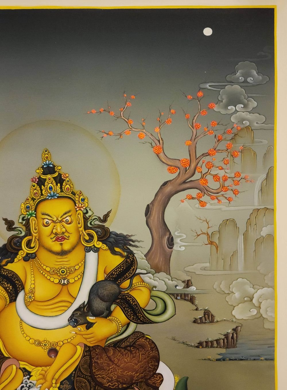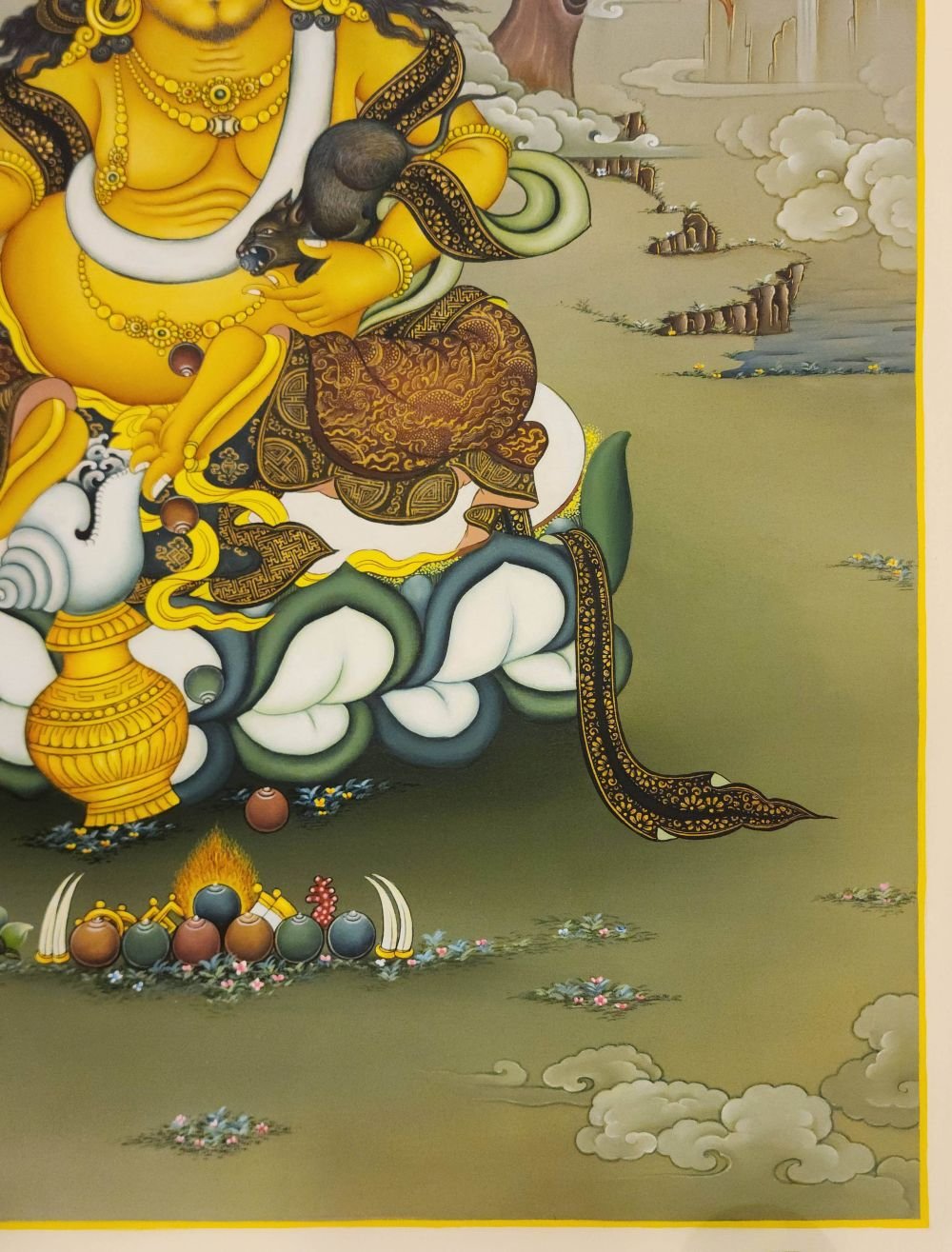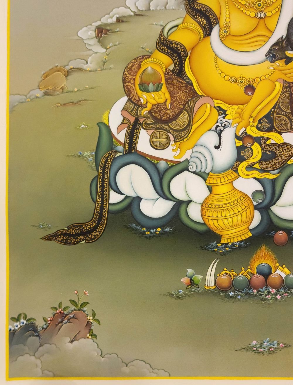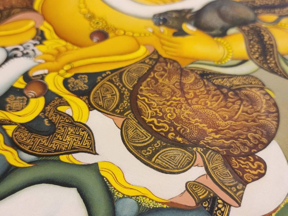 Yellow Jambhala, Master Quality, Buddhist Handmade Thangka Painting, Karma Gadri Art , fostering generosity and abundance