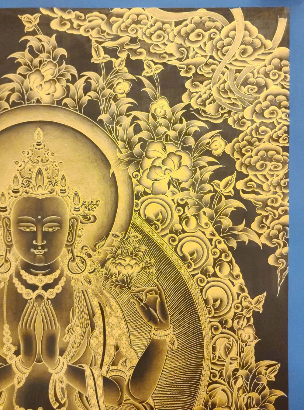 Chenrezig, Buddhist Handmade Thangka Painting, Tibetan Style, Real Gold , Bodhisattva of Compassion, Protector of All Beings