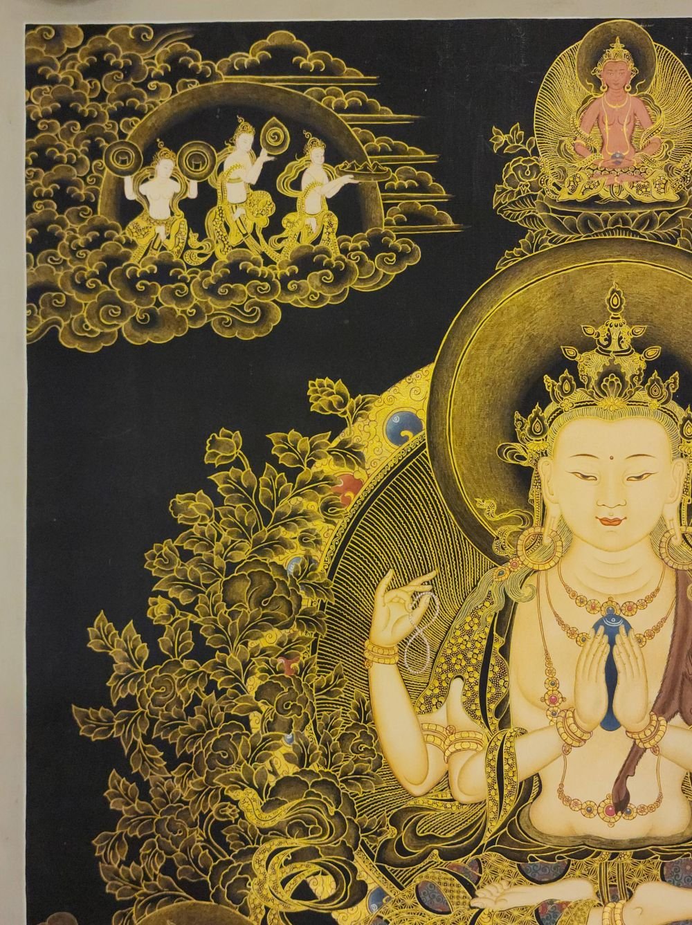 Chenrezig, Buddhist Handmade Thangka Painting, Tibetan Style, Real Gold , Bodhisattva of Compassion, Protector of All Beings