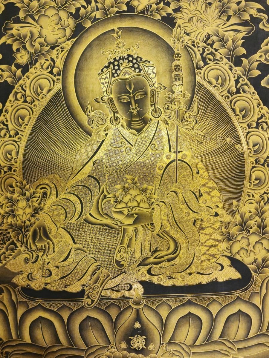 Padmasambhava Guru Rinpochen, Buddhist Handmade Thangka Painting, Tibetan Style, Real Gold , The lotus-born master, wisdom beyond time