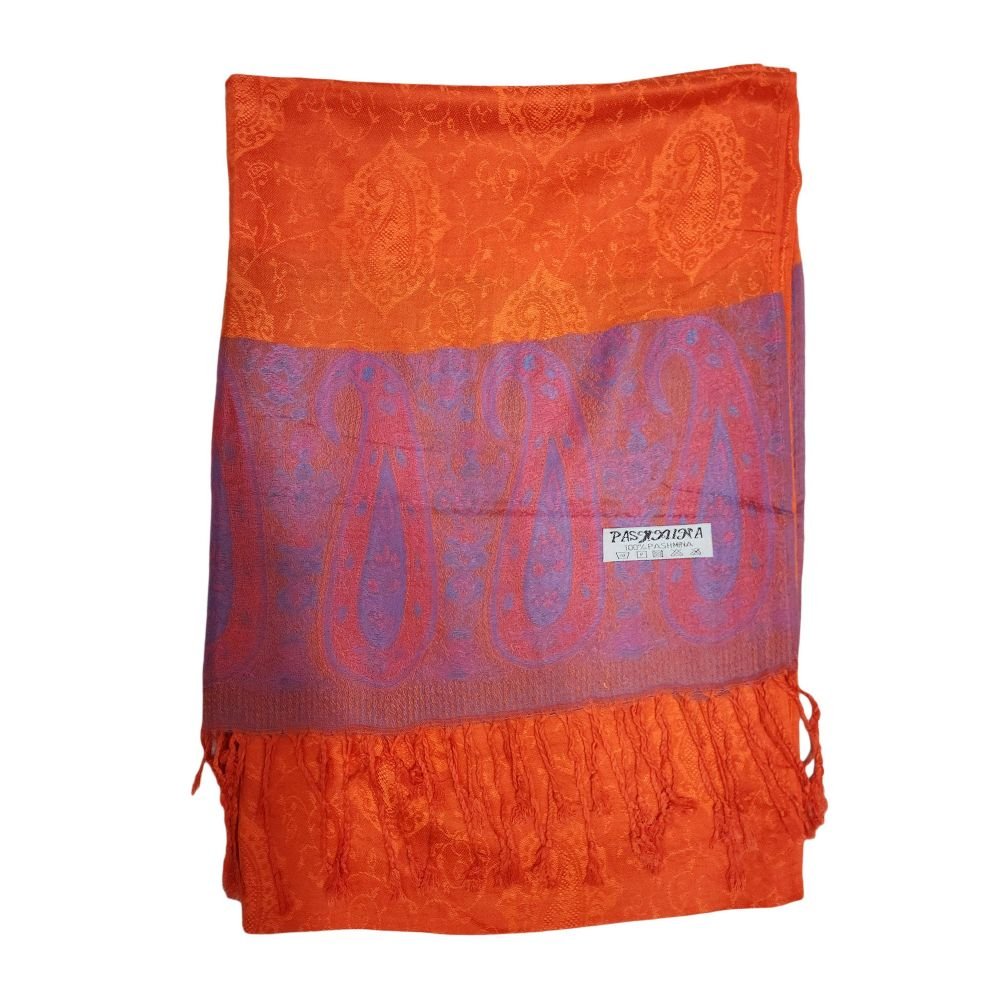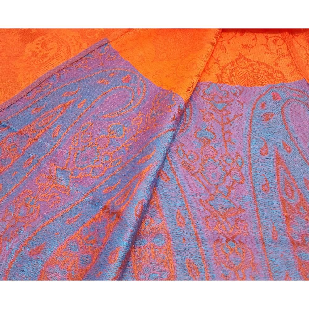 Jamawar Shawl, Nepali Acrylic Shawl, Color Orange and Pink |