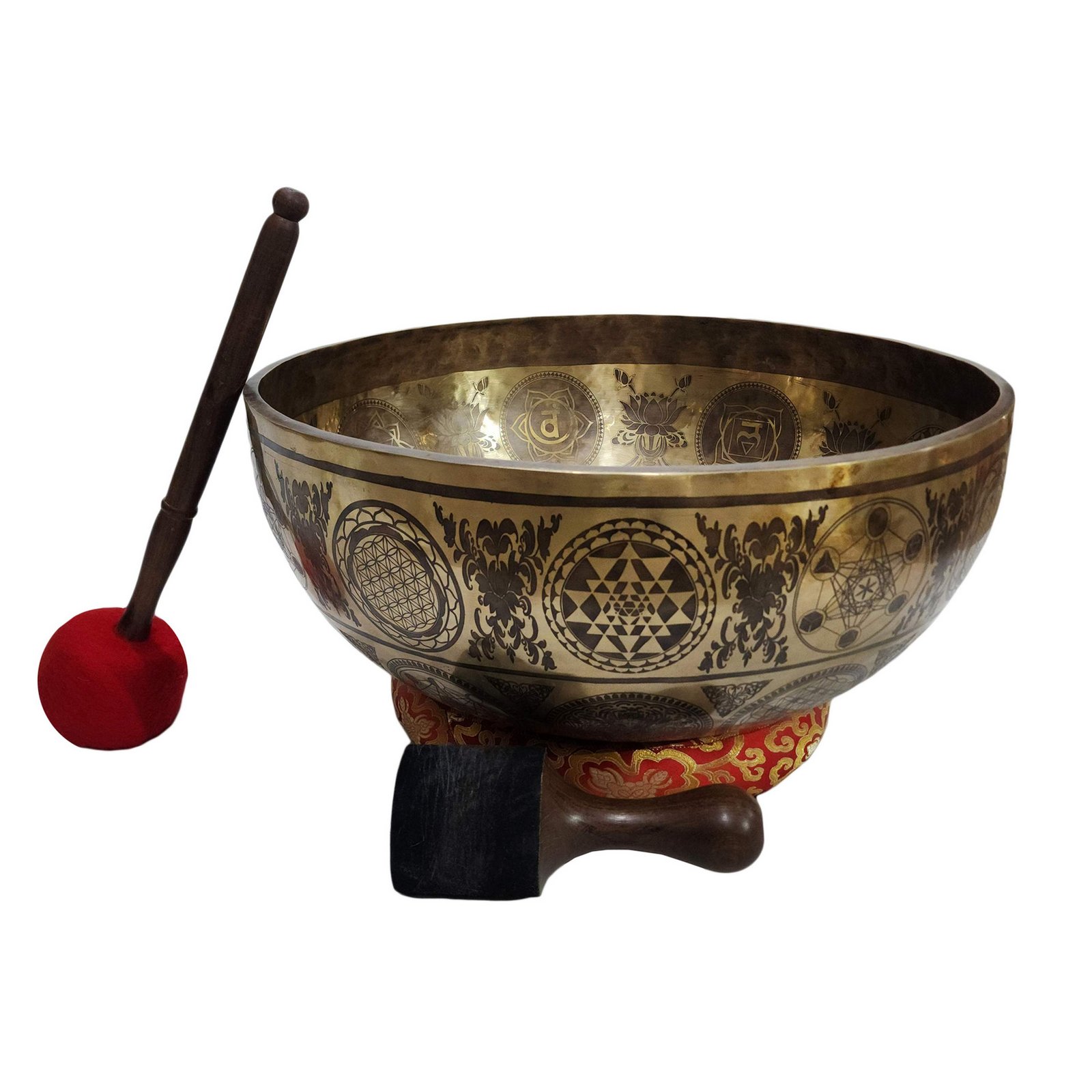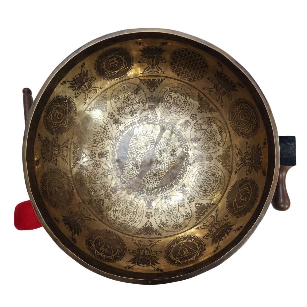 Singing Bowl, Buddhist Hand Beaten, Jambati, with Super Fine Etching Carving, Buddha Feet, Foot Singing Bowls, Select Accessories |