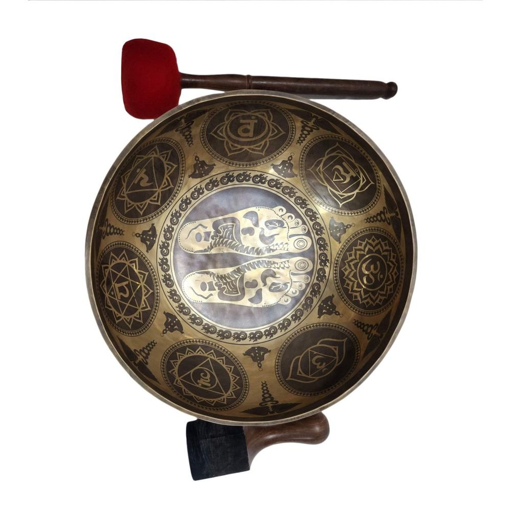 Singing Bowl, Buddhist Hand Beaten, Jambati, with Super Fine Etching Carving, Buddha Feet, Foot Singing Bowls, Select Accessories |