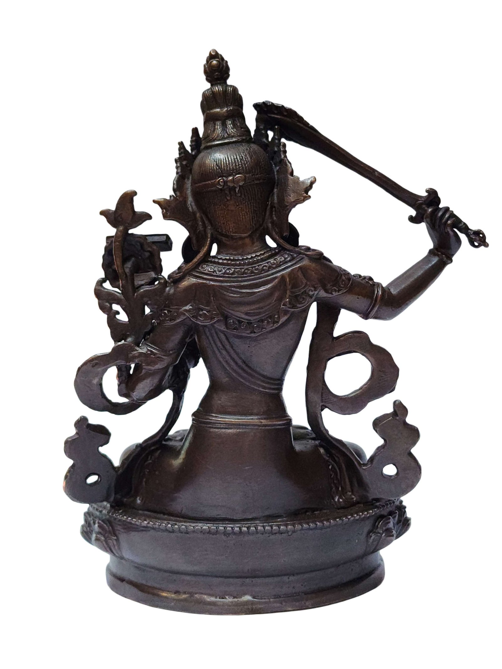 Manjushri, Buddhist Miniature Statue, Chocolate Oxidized , Wisdom Buddha, cutting through ignorance with the sword of insight