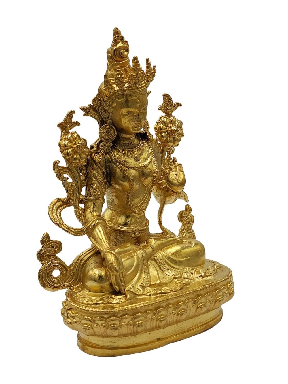 White Tara, Buddhist Miniature Statue, Full Gold Plated , Goddess of longevity, healing, and serene compassion