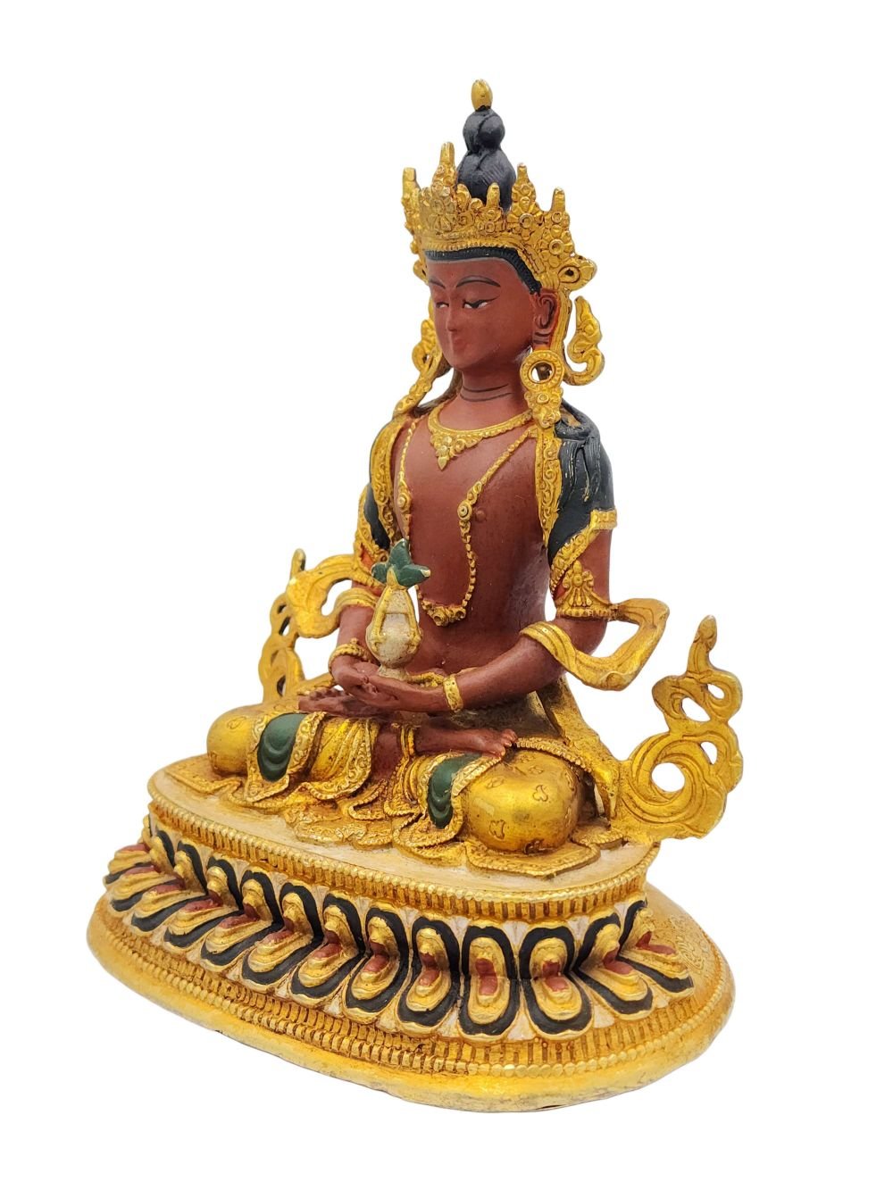 Aparimita, Buddhist Miniature Statue, Gold Plated, Color Finishing, Amitayus, Chepame , Buddha of Long Life, Wisdom, and Spiritual Vitality