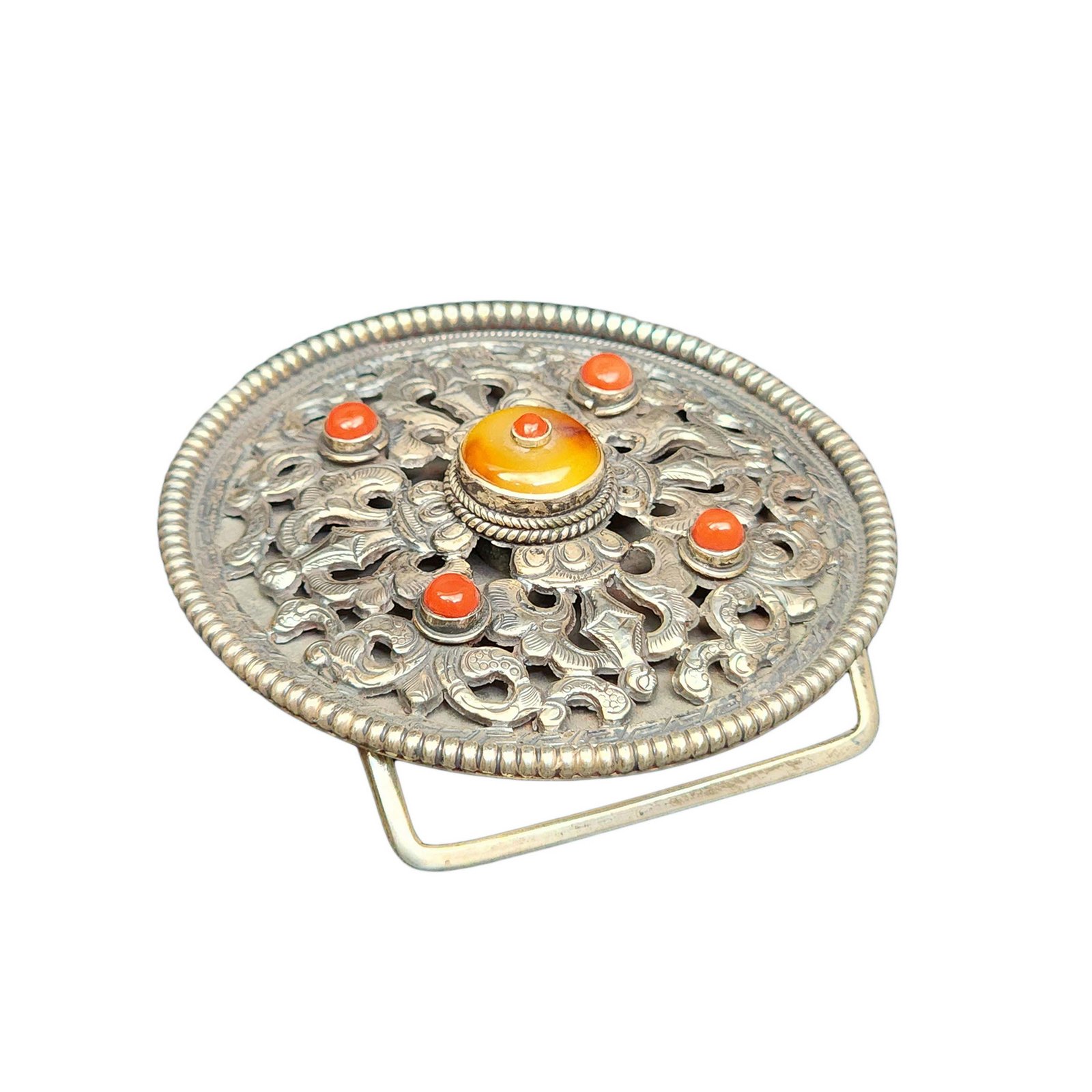 Belt Buckle of Silver with yellow Amber |