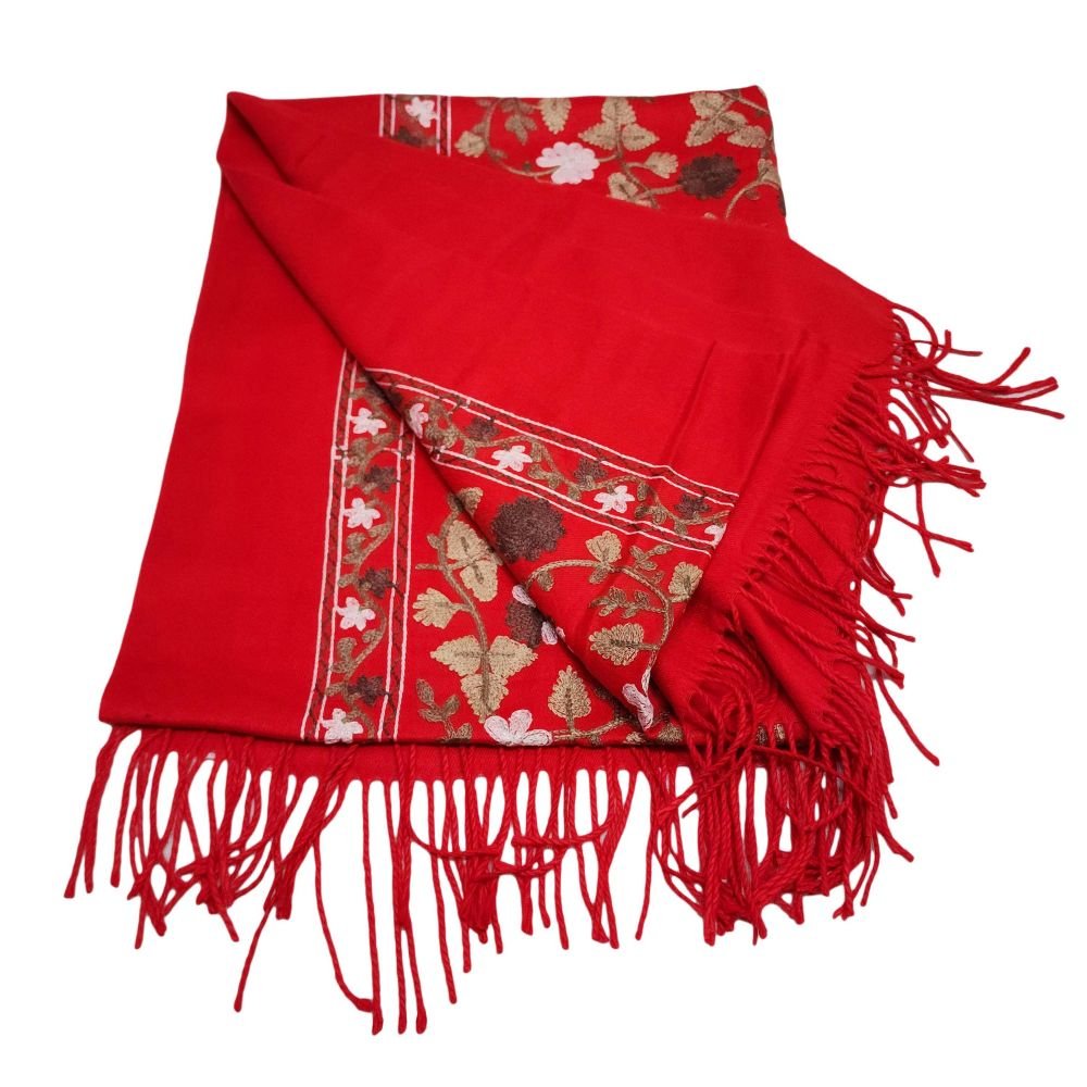 Desigener Shawl, Thick Nepali Shawl, with Heavy Embroidery, Color Red |