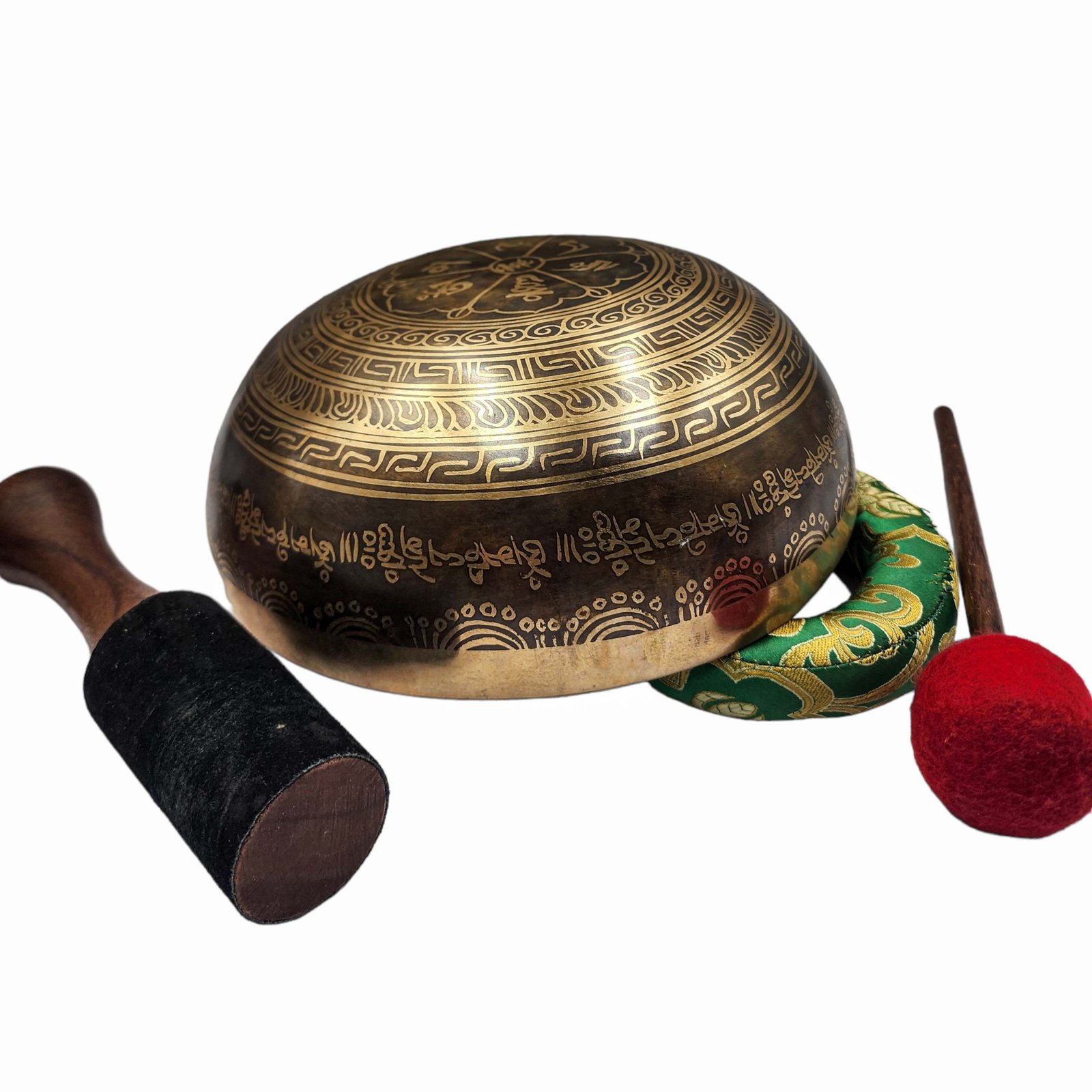 Singing Bowl, Buddhist Hand Beaten, with Fine Etching Carving, Select Accessories |