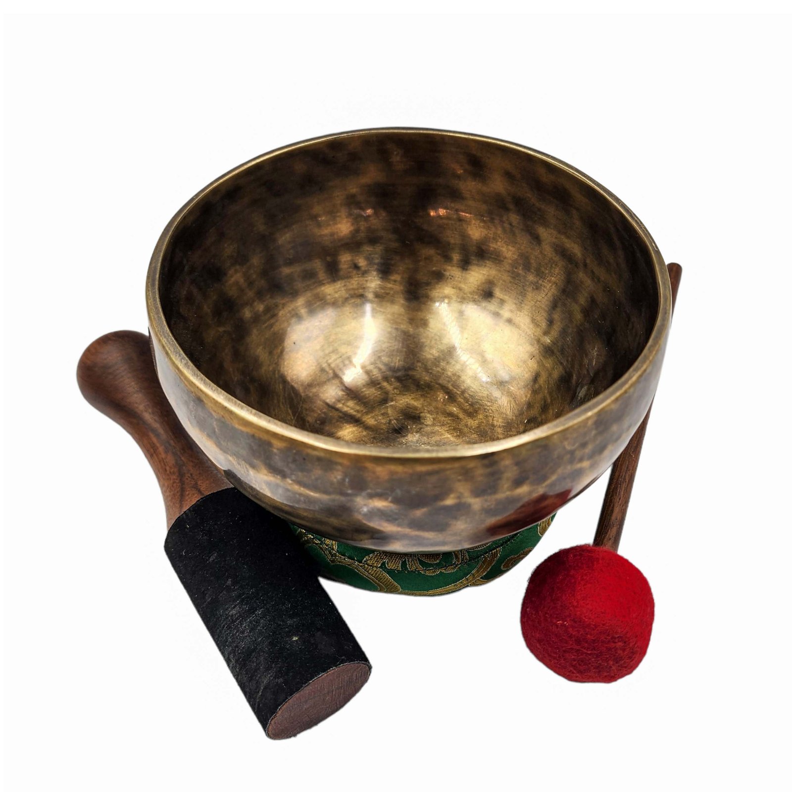 The Jambati Singing Bowl you are purchasing includes a cushion, a wooden playing mallet, and a felt-hitting mallet for playing the bowl. If you require additional accessories, you can browse the options above and purchase them separately. Should you have any further questions or need assistance, please don't hesitate to let us know. Read More