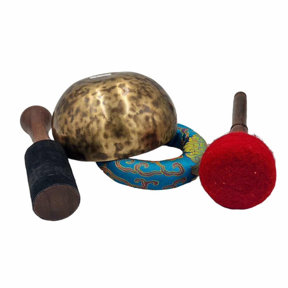 The Jambati Singing Bowl you are purchasing includes a cushion, a wooden playing mallet, and a felt-hitting mallet for playing the bowl. If you require additional accessories, you can browse the options above and purchase them separately. Should you have any further questions or need assistance, please don't hesitate to let us know. Read More