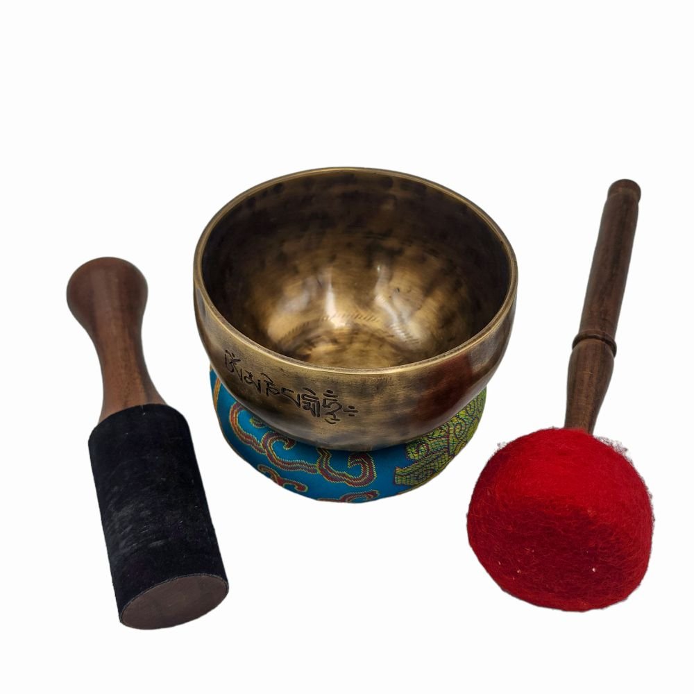 Singing Bowl, Buddhist Hand Beaten, Moon Carved, Antique Finishing, Select Accessories |