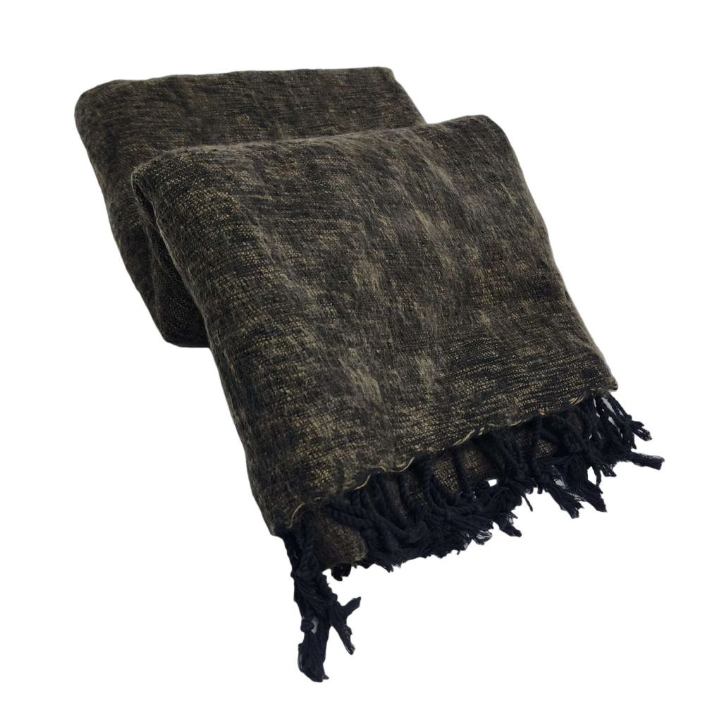Yak Wool Blanket, Nepali Acrylic Hand Loom Blanket, Color Brownish-gray |