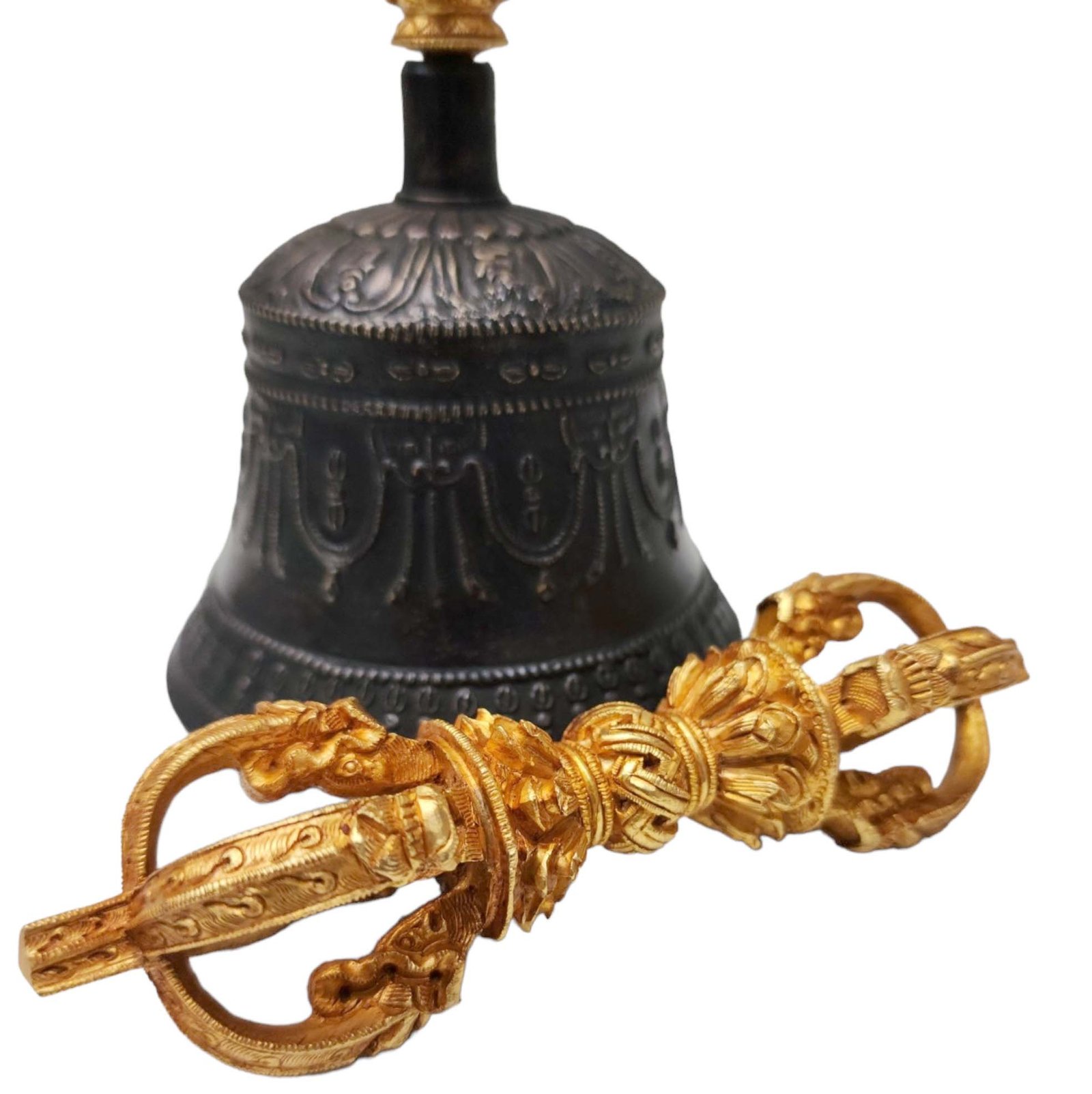 Dehradun Bell and Dorje Vajra, Bronze - High Quality, Full Gold Plated , The union of wisdom and compassion