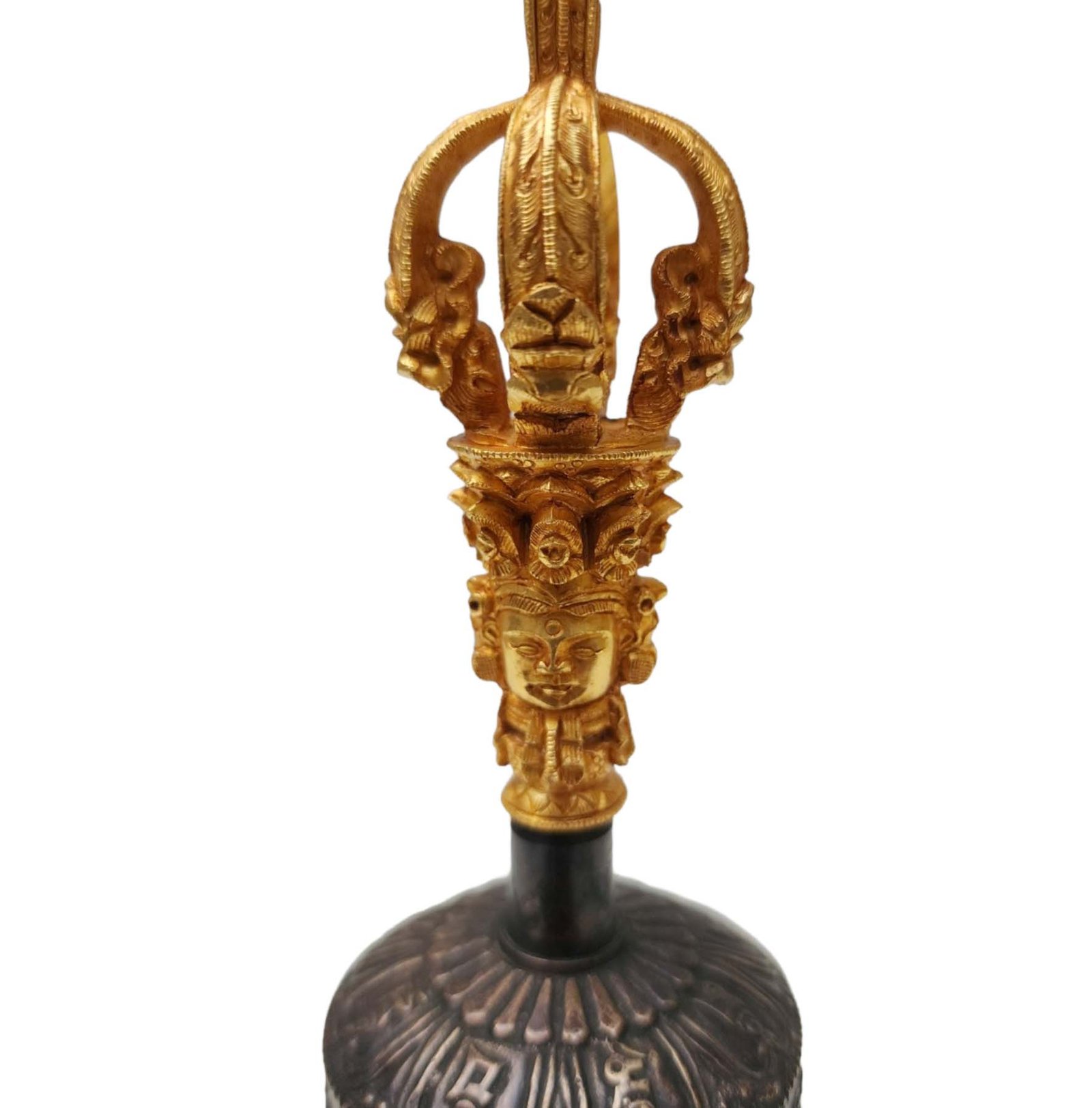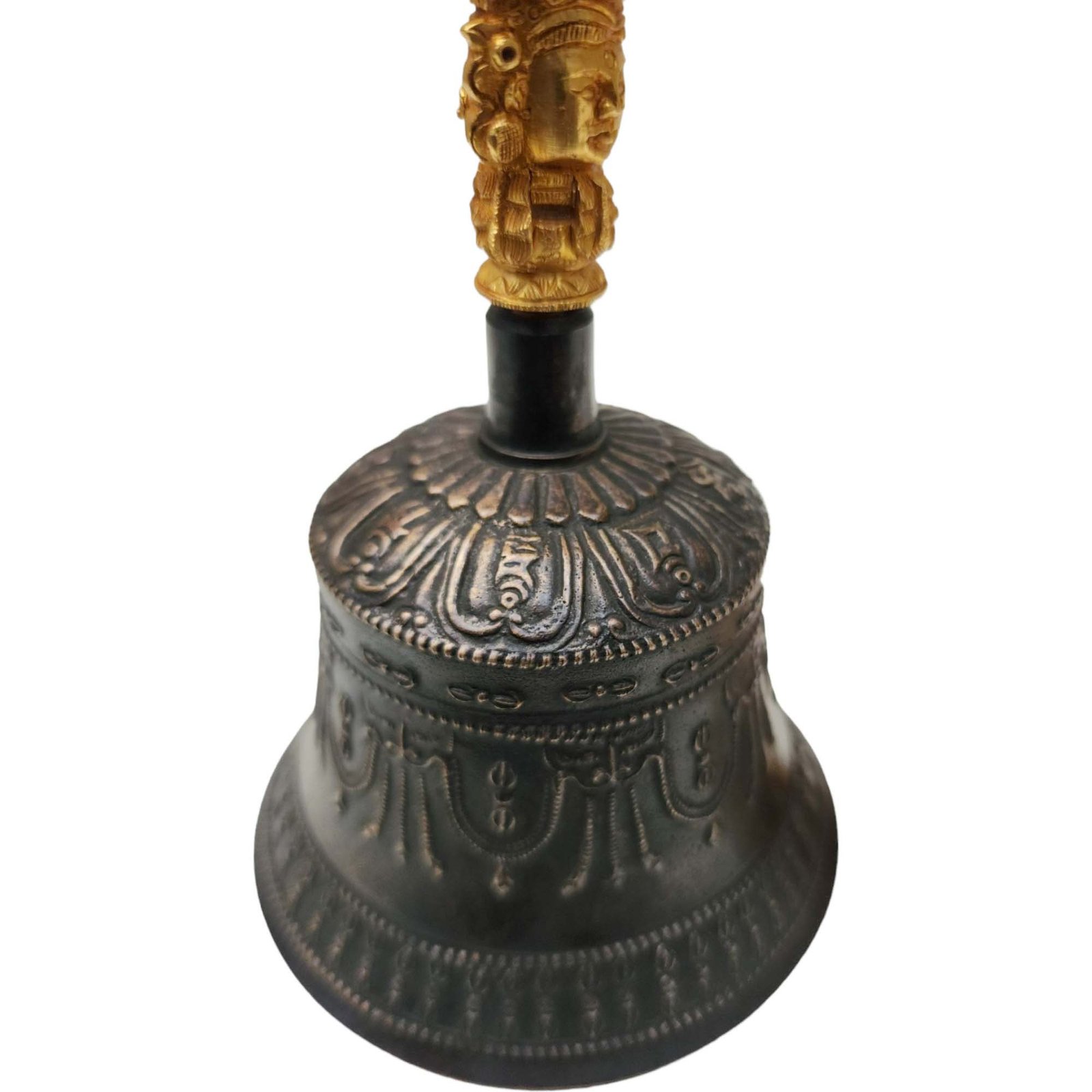 The bell, also known as a "drilbu" in Tibetan, is made from high-quality metal alloys, typically bronze or brass. It features a distinctive shape with a wide base that gradually tapers toward the top. The bell's body is adorned with intricate patterns, intricate carvings, and traditional motifs that reflect the rich cultural heritage of Tibet. These designs are often inspired by Buddhist symbols, mantras, or deities, adding a spiritual dimension to the bell's aesthetics. Read More
