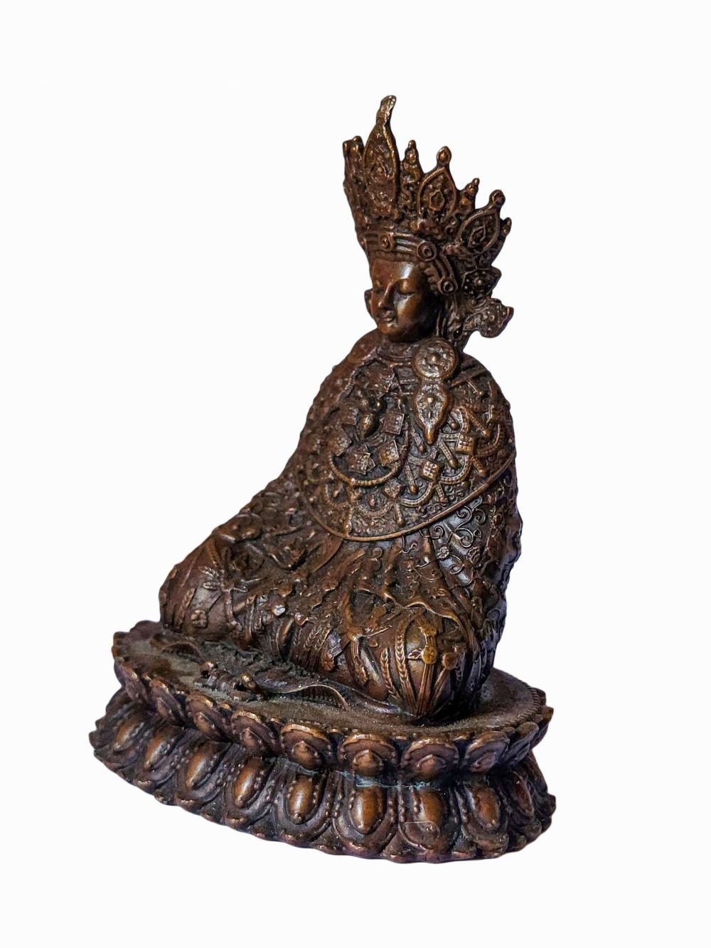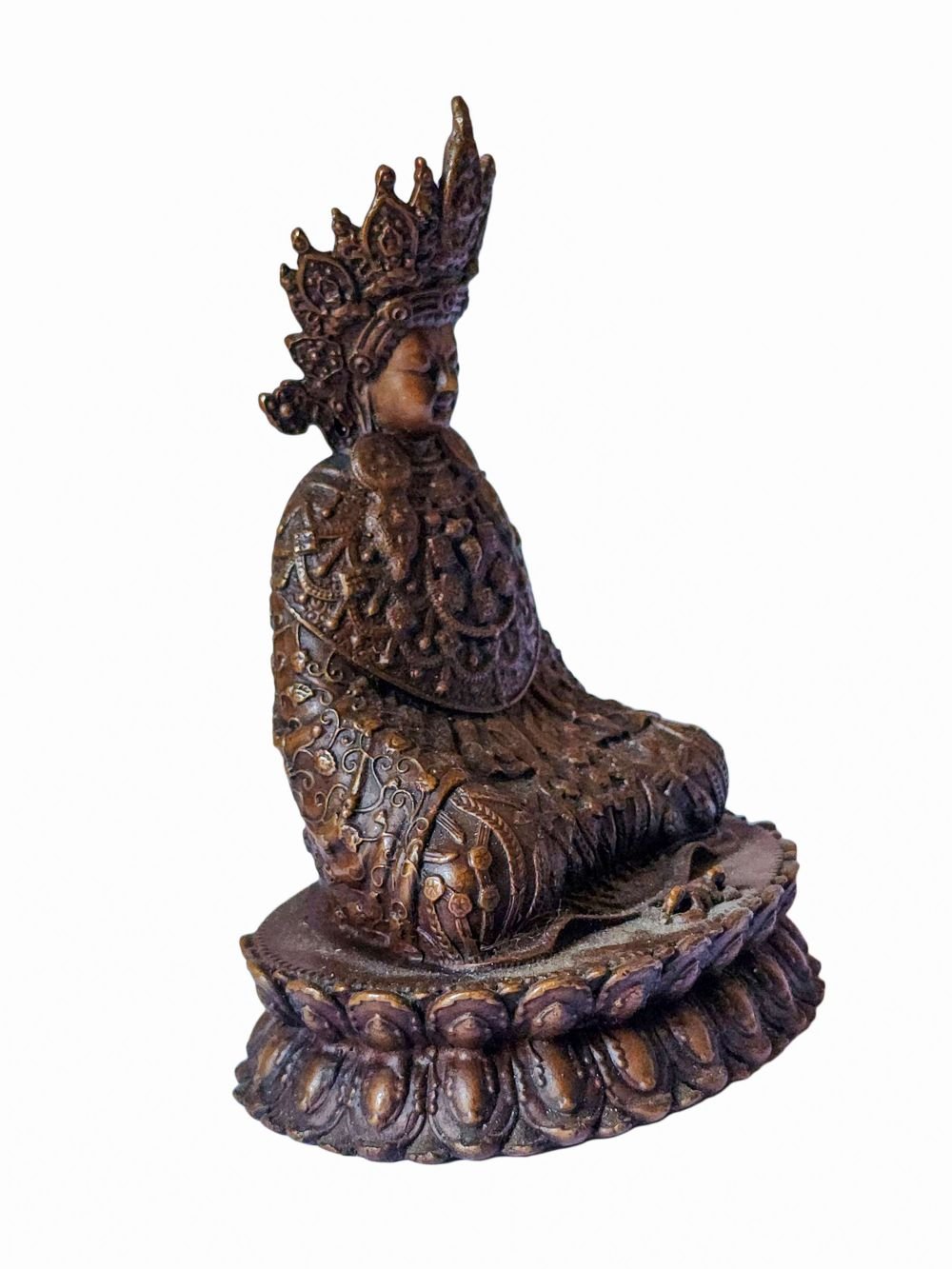 By imitating the natural aging process, the chocolate color antique patina lends an air of authenticity and vintage charm to the Dipankara Buddha. This carefully crafted finish ensures that the patina remains intact for an extended period, offering longevity and resistance to wear. The result is a unique piece that captures the essence of a time-worn copper statue, evoking a sense of history and artistic heritage.