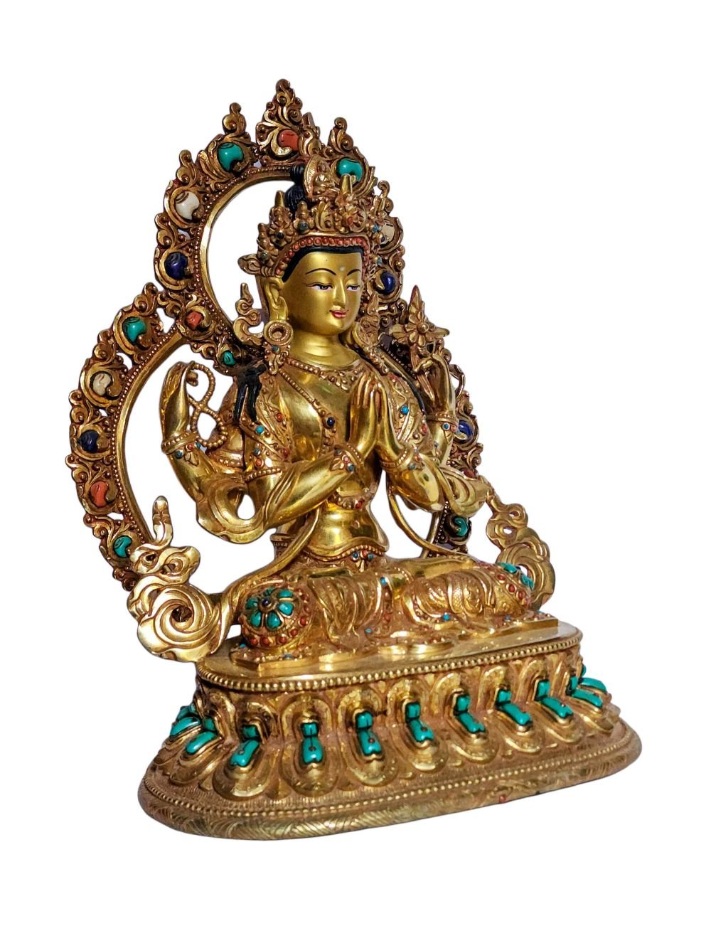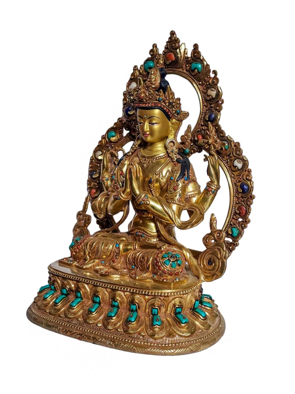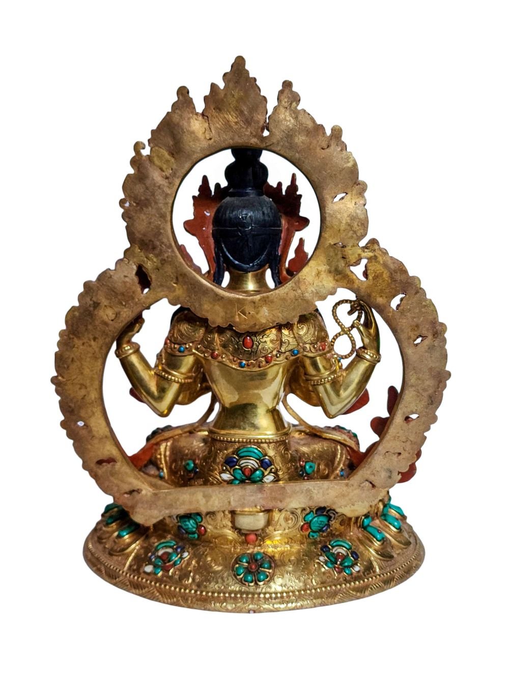 Chenrezig, Buddhist Handmade Statue, Full Gold Plated, Stone Setting with Face Painted, Original Mold , Bodhisattva of Compassion, Protector of All Beings