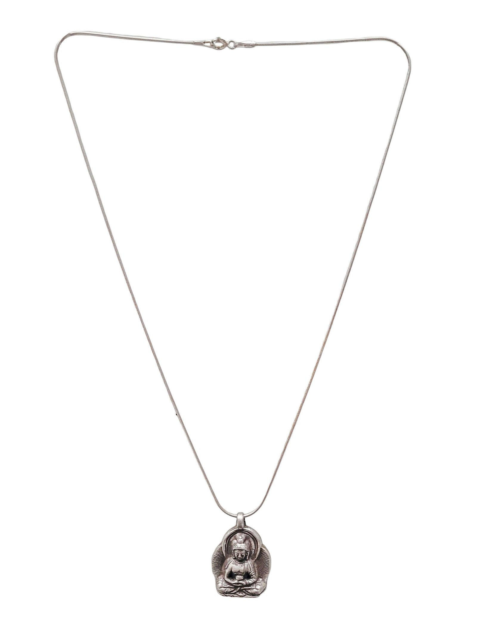 Pendant, Buddhist Silver Amulet with Amitabha Buddha, Silver Chain Included |