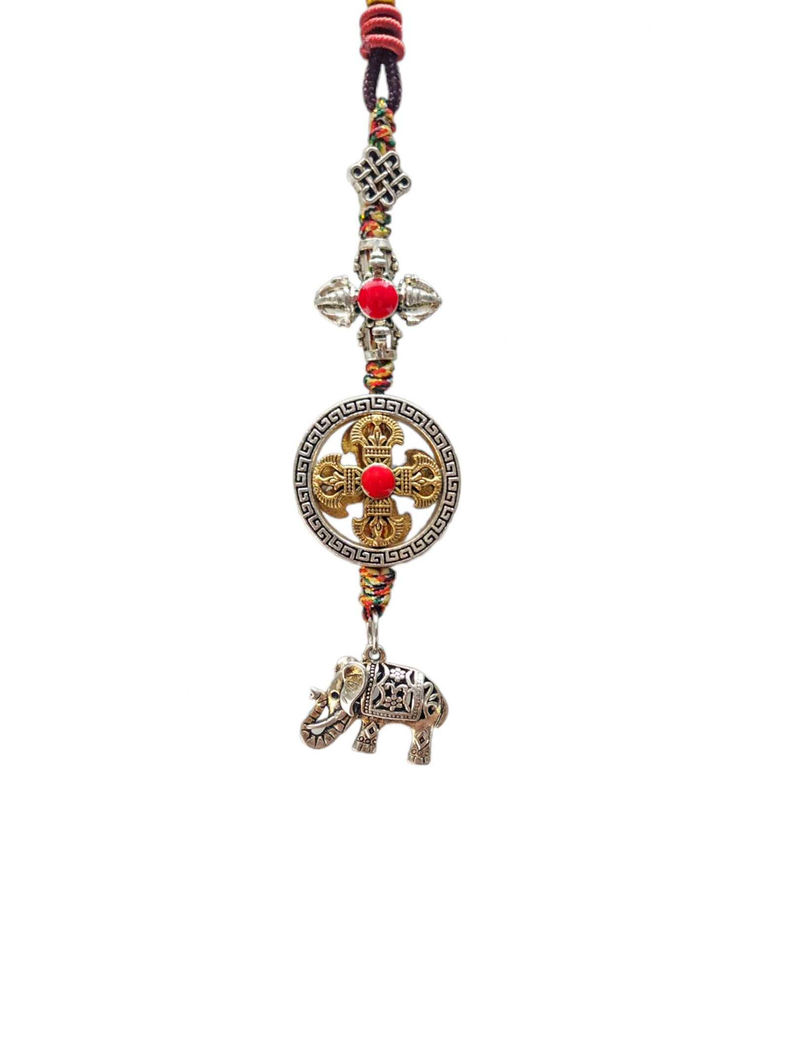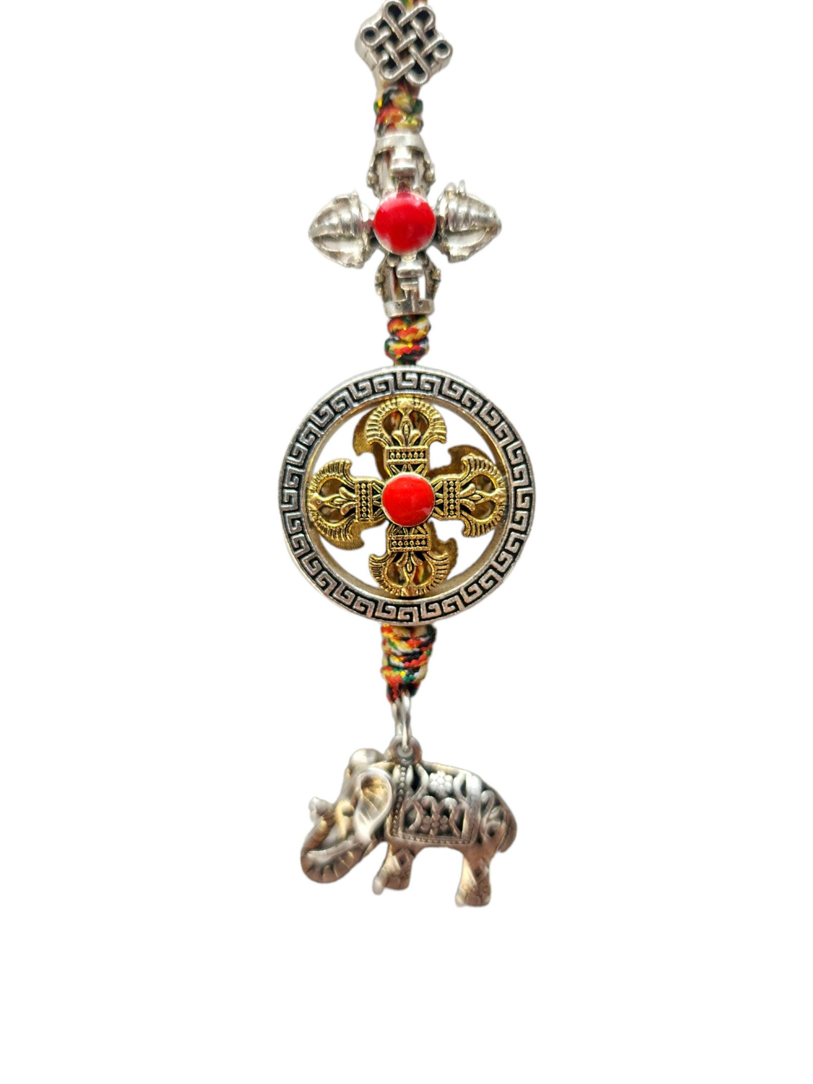 Buddhist Ritual Amulet Hanging with Double Dorje and Elephant, For Wall, Altar, Bags and Keyring |