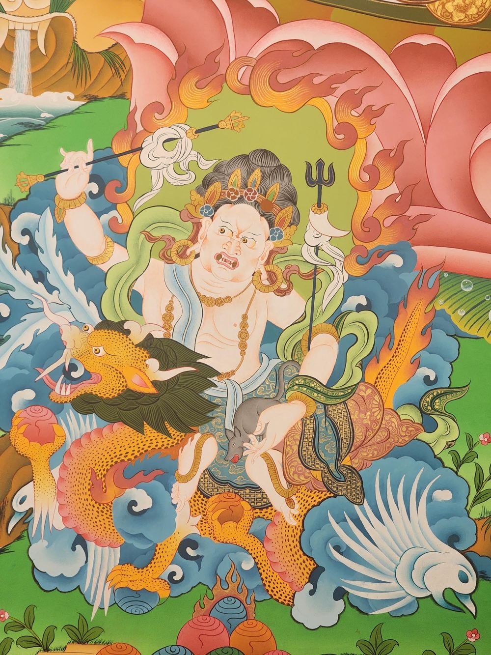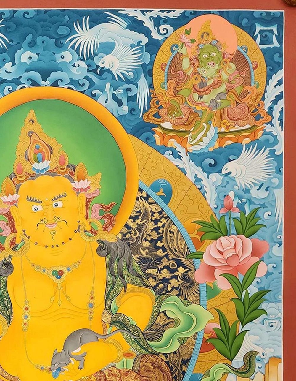 Five Jambhala Thangka, Tibetan Buddhist Art, Hand Painted, Real Gold , Five Wealth Deities, Bringing Prosperity, Fortune, and Generosity