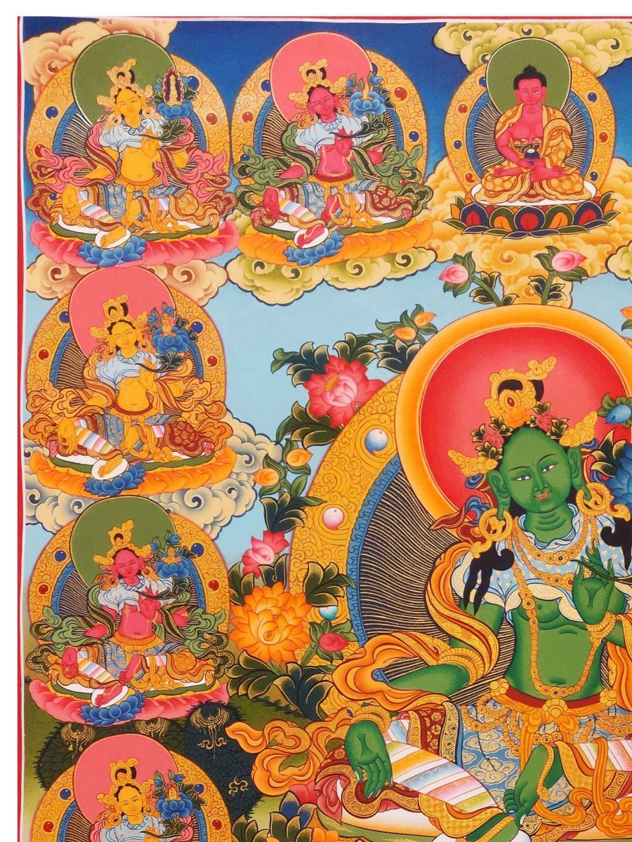 21 Tara Thangka, Tibetan Buddhist Art, Hand Painted, Real Gold , Divine Manifestations of Protection, Compassion, and Healing